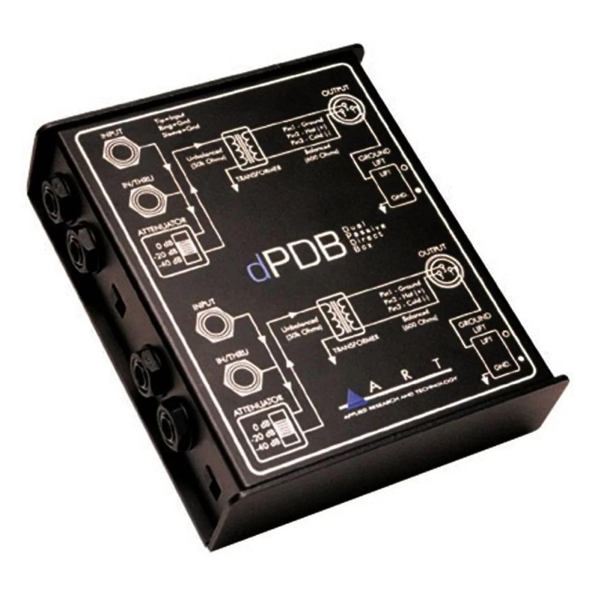 ARTART dPDB - Двухканальный пассивный директ-бокс в металлическом корпусе. Служит для перевода линейного небалансного сигнала в балансный для передачи его в мультикор или микшерный пульт.