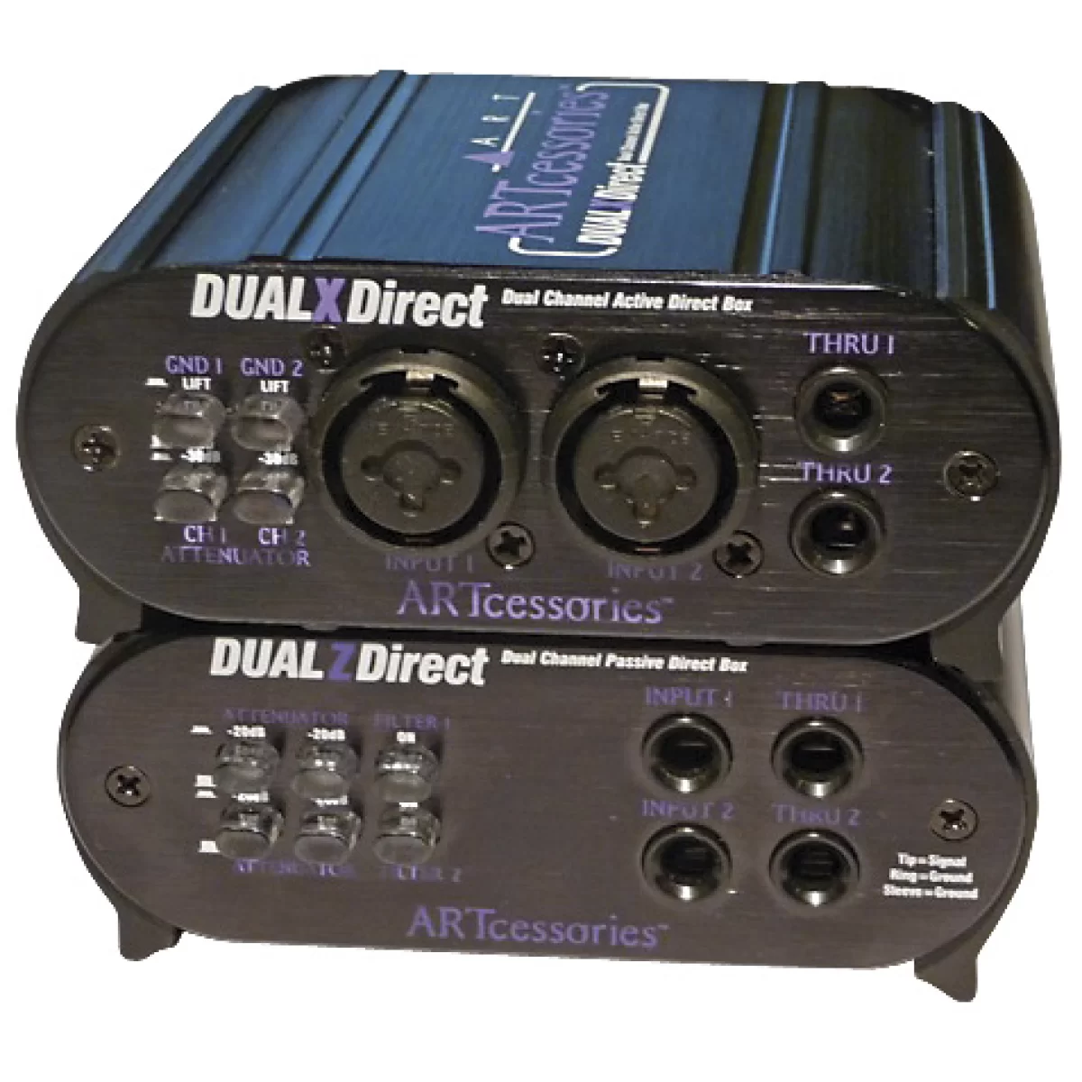 ART DualZDirect – двойной профессиональный пассивный Direct Box, который обеспечивает два независимых высококачественных полностью пассивных интерфейса. С их помощью можно подключать линию, инструменты или сигналы уровня громкоговорителей в микшер или к другим симметричным входам через изолированные аудио трансформаторы высокой производительности.