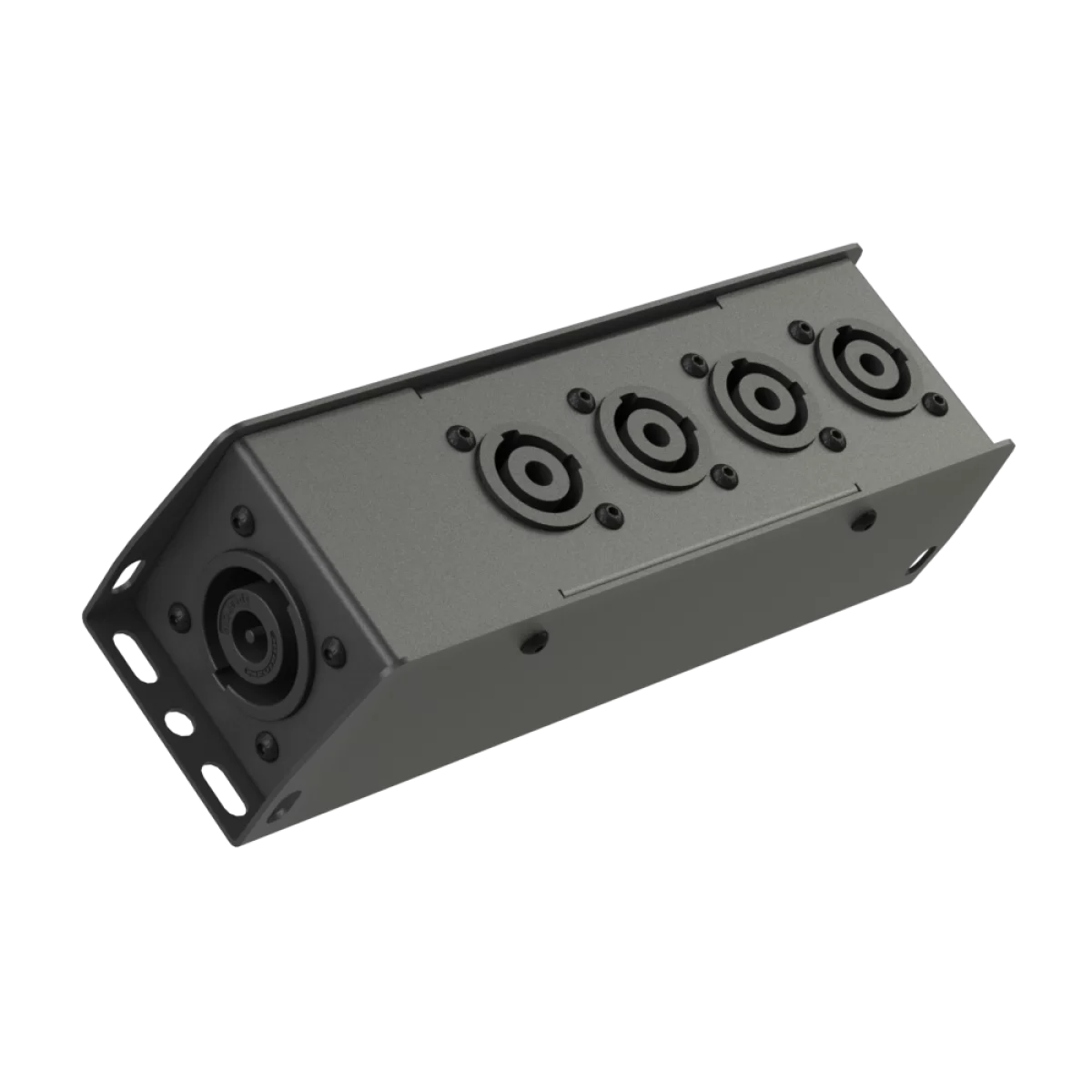 Описание подготовлено командой сайта samid.ruСплиттер оснащен одним разъемом Speakon 8 pin и набором из четырех разъемов Speakon 4 pin, которые имеют 4-контактную разводку и расположены попарно.