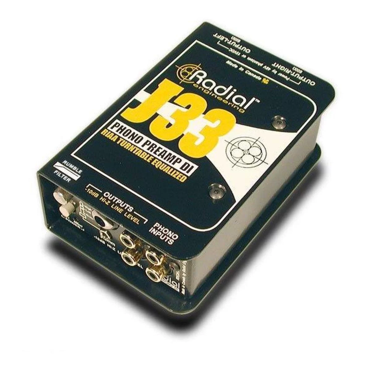 Radial J33 - директ бокс для винила, 2 RCA вход, 2 RCA выход, 2 XLR выход, стерео джек и миниджек выход.