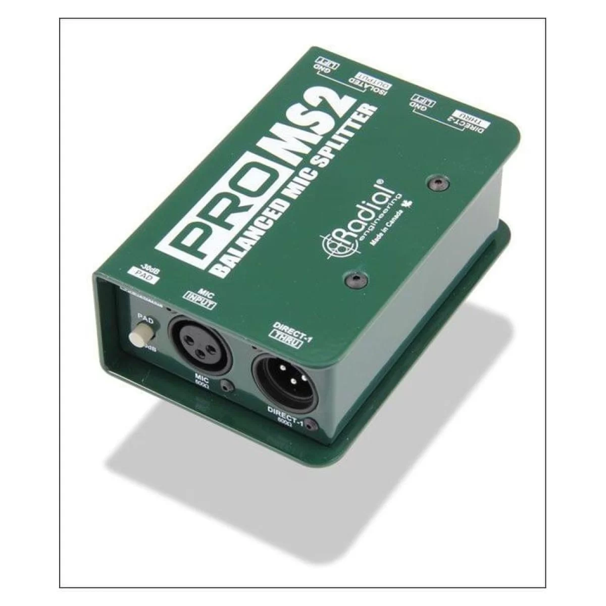Radial Pro MS2 является высокопроизводительным микрофонным сплиттером, позволяя отправлять сигнал одновременно на три балансных выхода. Есть симметричный вход (XLR), переключатель входного аттенюатора (-30 дБ), два сквозных выхода (XLR), переключатель заземления второго сквозного выхода, сплиттерный выход (XLR) c гальванической развязкой и переключателем заземления. Используемый трансформатор Eclipse ET-MS10 обеспечивает широкий частотный диапазон и исключительную обработку сигнала с практически нулевым искажением во всех частотах.