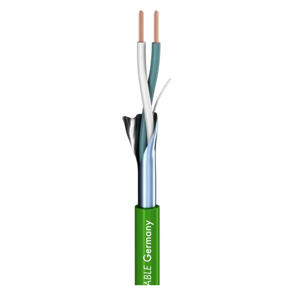 Прочный двухжильный, защищенный фольгированным экраном (AL/PT) кабель диаметром 3,3 мм для внутрирэковых соединений профессионального и Hi-Fi-оборудования. Две жилы сечением 0,22 кв.мм (AWG 24) в изоляции из полиэтилена (PE). Гибкая ПВХ (PVC) оболочка. Цвет зеленый.