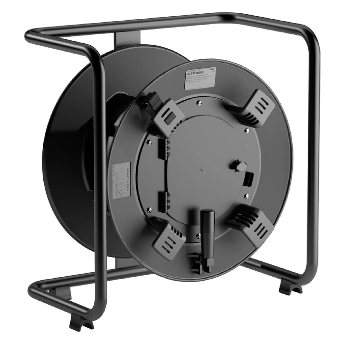 SchillSchill SK 380.RMFK - Рамная кабельная катушка, с лючком на замке и внешним держателем кабеля, открытая рама, поворотная ручка, дополнительное отверстие в барабане D51 мм., предназначенное для продевания кабеля с разъемом в сборе.