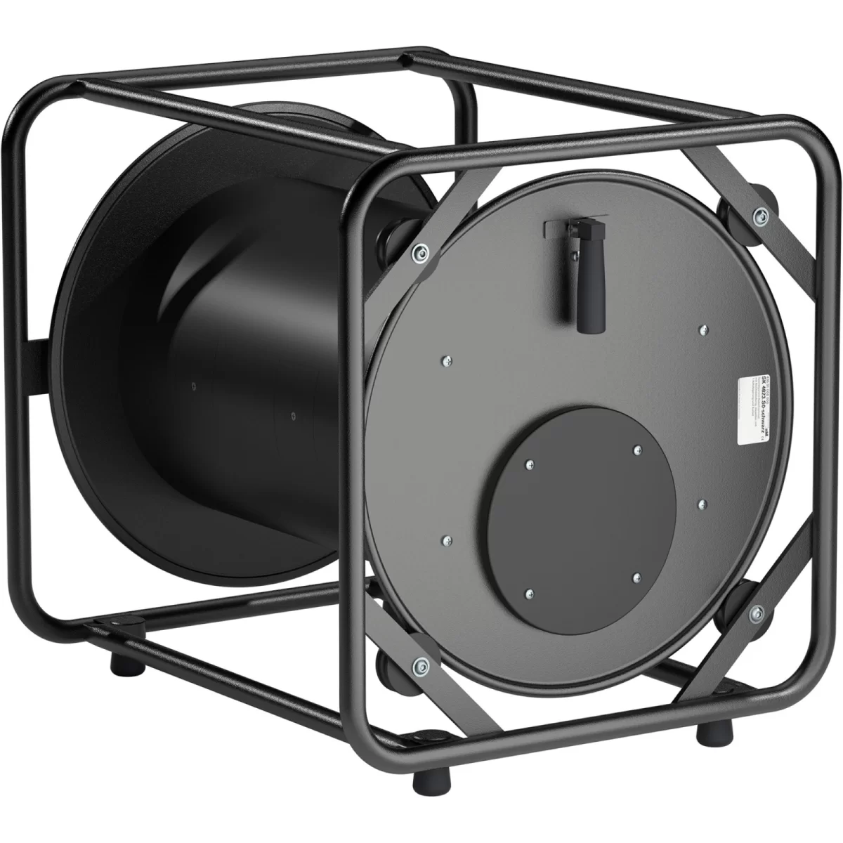 SchillSchill SK 4823.S0-schwarz - Рамная кабельная катушка с внешним держателем кабеля, металлическая прямоугольная рама и диски, барабан из ударопрочного пластика, ручка перемотки.