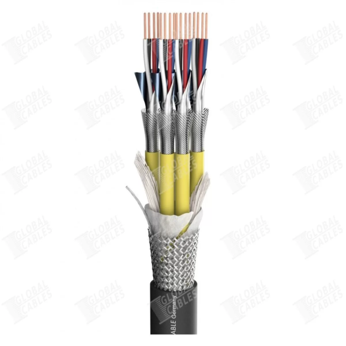 Содержит 4 витых пары многопроволочных жил из бескислородной меди (OFC) сечением 0,19 кв.мм. Каждая пара в своем фольгированном AL/PT экране. Все аудиокабели покрыты общим AL/PT экраном и черной матовой S-PVC оболочкой диаметром 8,8 мм.