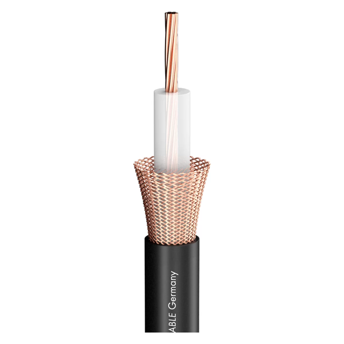 Описание подготовлено командой сайта samid.ruКабель имеет прочную внешнюю ПВХ-оболочку диаметром 9,5 мм черного цвета. Толстая проводящая жила сечением 2,7 кв.мм (диаметр 1,85 мм, AWG 13). Изоляция жилы из PE диаметром 6,4 мм. Жила экранирована медной оплеткой с покрытием 92%.