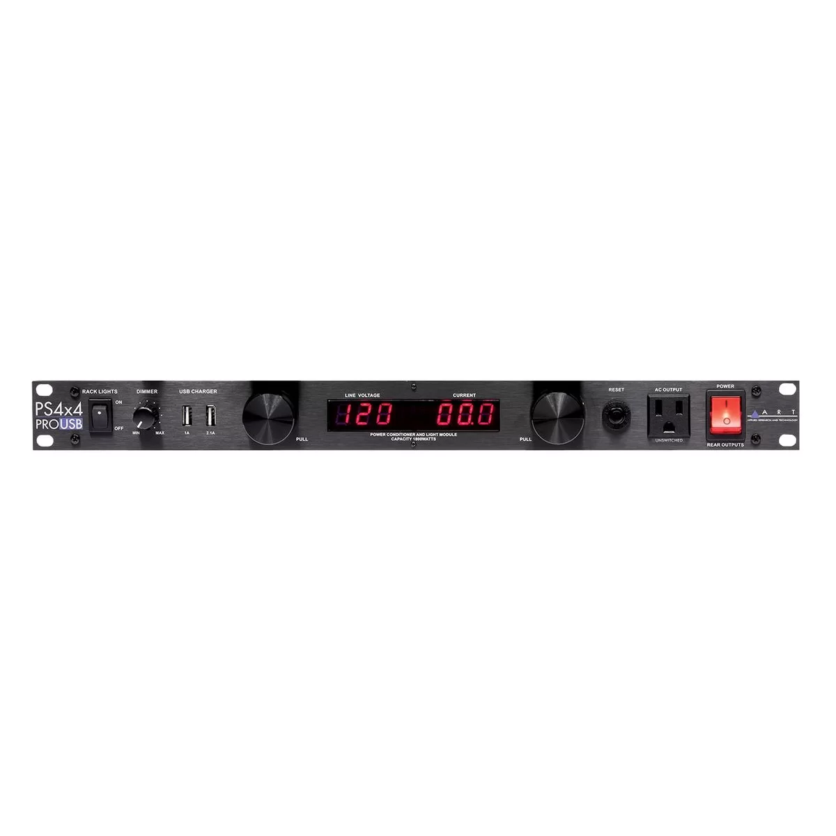 ART PS4x4ProUSB - Сетевой дистрибьютор для рэковых приборов с выдвижной подсветкой и индикатором входного напряжения и нагрузки.