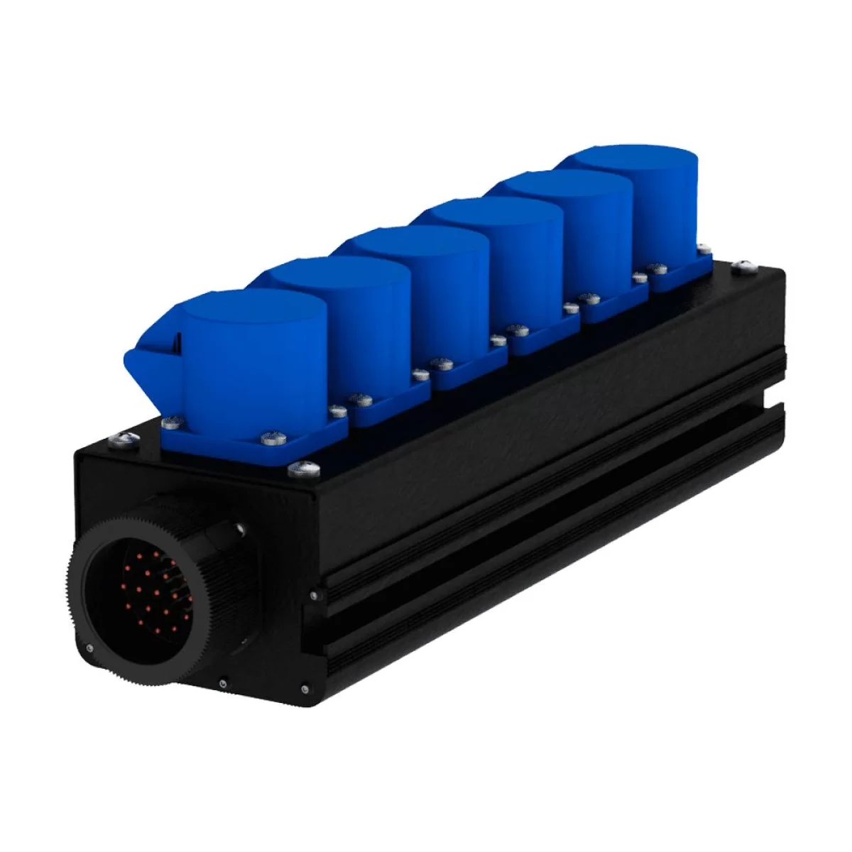 | Выход | панельная розетка Socapex 19-pin — 1 шт розетка РСЕ СЕЕ 16А 3-pol — 6 шт |