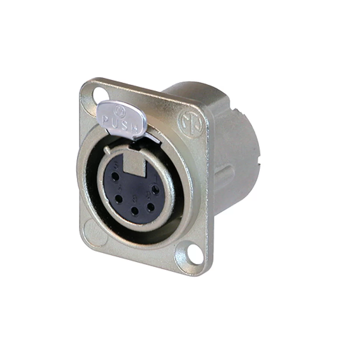 Neutrik NC5FD-LX относится к серии DLX, отличительной особенностью которой является полностью металлический корпус в сочетании с двойным заземляющим контактом, что обеспечивает наилучшую защиту от радиочастотных помех и отличный контакт с шасси.