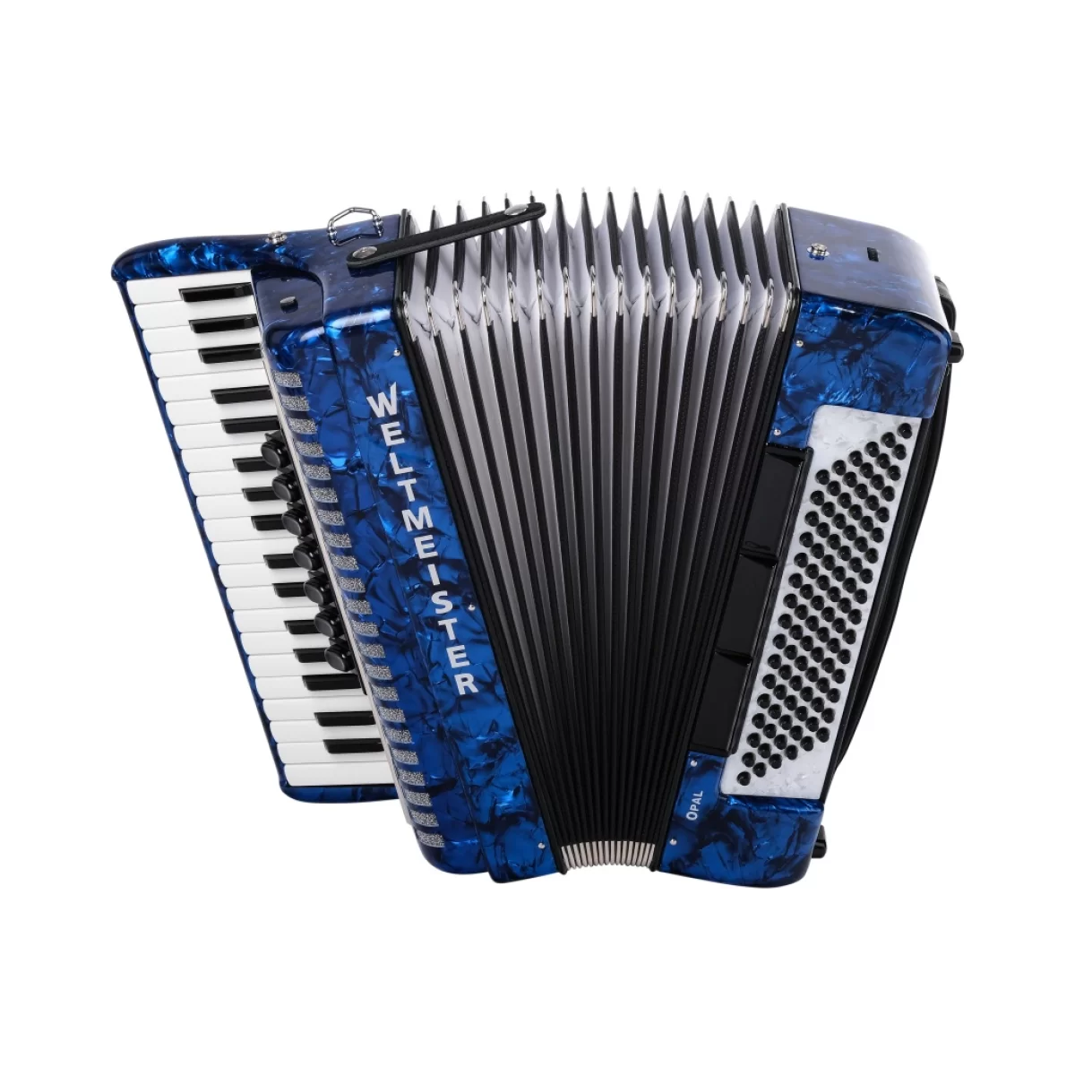 Клавиатура мелодии выполнена с уменьшенной мензурой. За счёт уменьшенных клавиш нижний диапазон Weltmeister Opal расширился до «Фа» большой октавы, как на полноразмерном инструменте, а верхняя граница диапазона лишь на терцию не дотягивает до «Ля» четвертой октавы. Аккордеон Weltmeister Opal идеально подойдет ученикам музыкальных школ для серьёзных занятий. Кроме того, это прекрасный инструмент для концертной работы благодаря небольшому размеру.