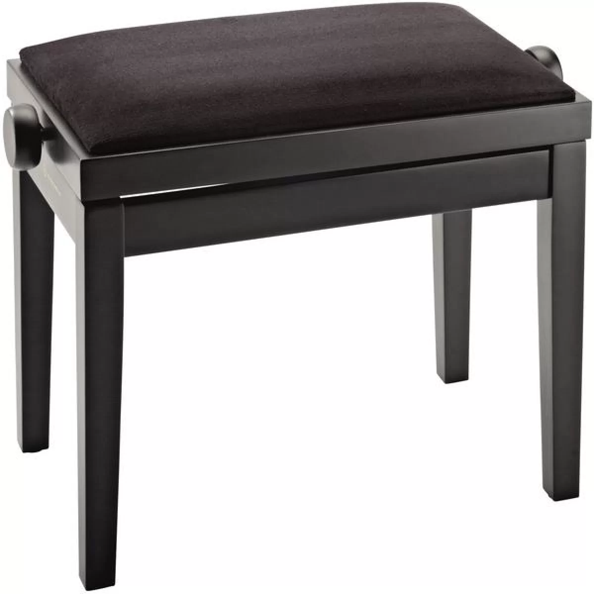 Представляем вам роскошную деревянную банкетку для фортепиано, сделанную из твердых сортов европейского бука. Дерево покрыто четырьмя слоями черного матового лака. Ножки снабжены специальными резиновыми заглушками, которые препятствуют скольжению. Высота легко регулируется вручную. Помимо прочной конструкции эта банкетка характерна своим невероятно удобным сиденьем, сделанным из ДСП, подушка которого обтянута шикарной черной бархатной тканью.