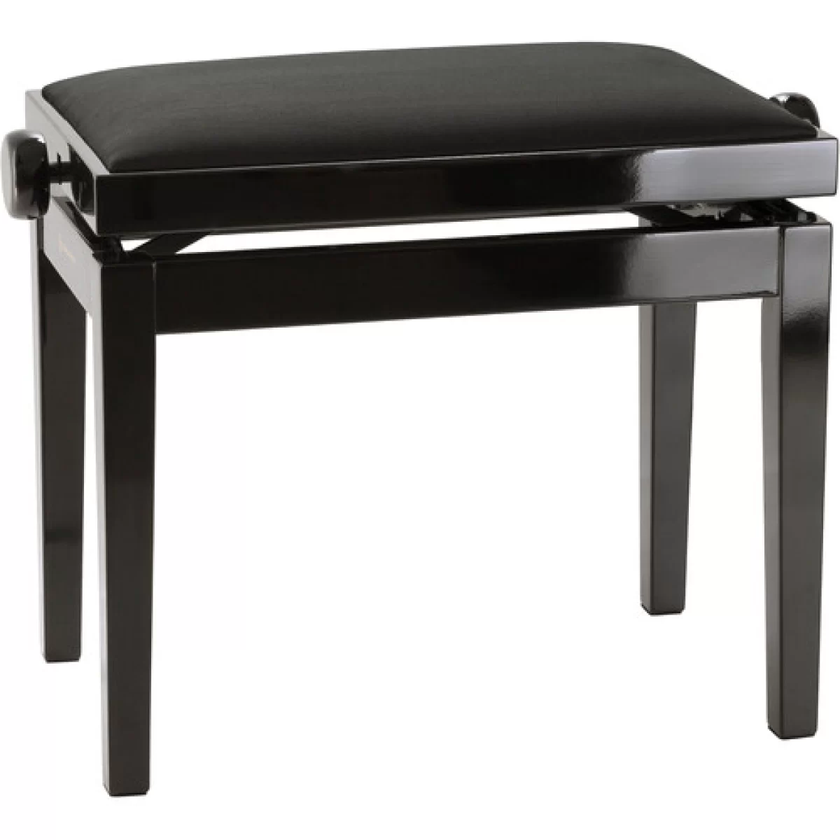 Цельная фортепианная банкетка из массива европейского бука, покрытая черным глянцевым полиэфирным лаком. Прочное мягкое сиденье с черной велюровой обивкой. Площадь сиденья составляет 520 x 300 мм. Ножки имеют резьбовые соединения, надежно проклеены и оснащены войлочными накладками, щадящими паркет. Высота регулируется от 480 до 580 мм.