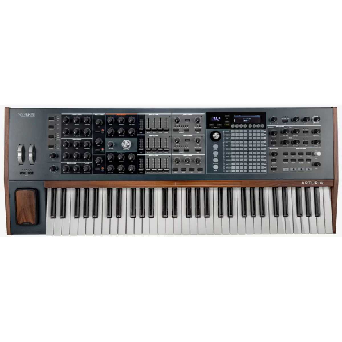 Синтезатор оснащен 61-клавишной чувствительной к скорости клавиатурой с эффектом послекасания. Модель имеет большое количество элементов управления, включая OLED-дисплей, а также ленточный контроллер и уникальный трехмерный контроллер Morphee XYZ, выполненный из древесины черного ореха. В основе PolyBrute лежит идея морфинга звука. Звуковой движок включает в себя 2 аналоговых генератора, ряд фильтров - FM, лестничный НЧ, Steiner-Parker, 3 LFO, генератор шума и секции VCF/VCA/MOD.