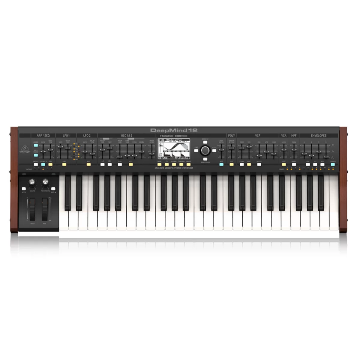 Behringer DeepMind 12 является аналогово-цифровым синтезатором с клавиатурой на 49 клавиш, чувствительных к касанию пальцев музыканта.