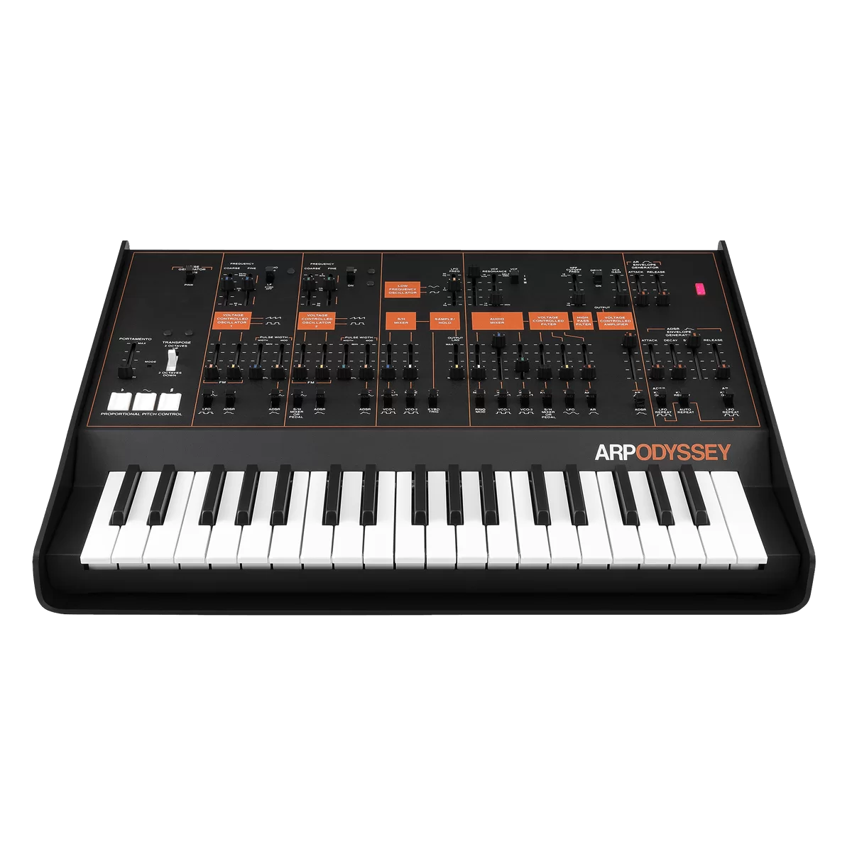 Korg ARP Odyssey уменьшен до 86% от оригинала. Тщательно отобранные детали, используемые в секции слайдеров работают более плавно по сравнению с оригиналом. Клавиатура представлена 37 тонкими клавишами, которые более легковесны и более играбельны. При изготовлении более компактного и легкого для игры инструмента, разработчики уделили особое внимание мини клавиатуре, чтобы она была бескомпромиссно играбельной. Благодаря функции транспонирования можно расширить рабочий диапазон до 7 октав.