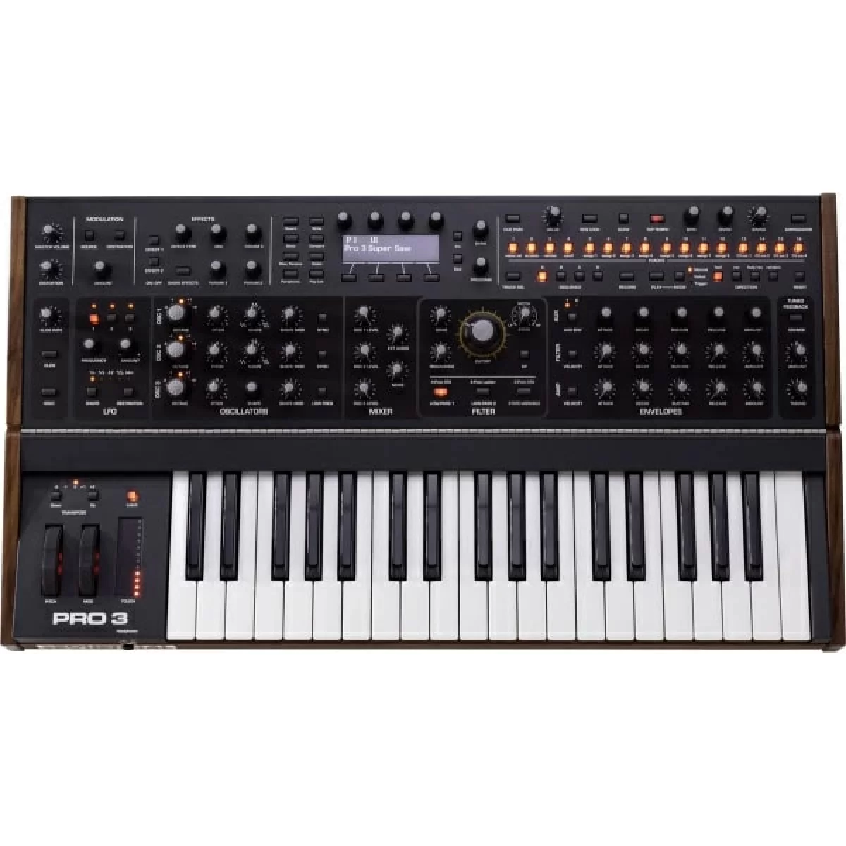 В основе звука синтезатора лежат 3 винтажных фильтра - 4-полосный НЧ фильтр, основанный на модели Prophet-6, классический транзисторный лестничный фильтр, а также фильтр, основанный на OB-6. Синтезатор имеет мощный секвенсор с 16 треками, 16 шагами и 4 фразами. Доступен как ввод в реальном времени, так и пошаговый ввод, а также несколько режимов воспроизведения. Он также синхронизируется с MIDI-часами и внешним аудиовходом. Дорожки секвенсора могут управлять любым из 171 параметра матрицы модуляции. Гибкая архитектура Pro 3 открывает двери не только для обработки внешнего звука, но и для взаимодействия с модульными синтезаторами с помощью 4 входов/выходов CV/Gate. Синтезатор имеет внушительный список эффектов, среди которых задержка, реверберация, хорус, фейзер, фленджер и многие другие. Также имеется 4 зацикливаемых пятиступенчатых генератора огибающей, 3 синхронизируемых LFO с поворотом и сдвигом фазы, полнофункциональный арпеджиатор и 32-слотовая матрица модуляции с десятками источников модуляции и более чем сотней пунктов назначения.