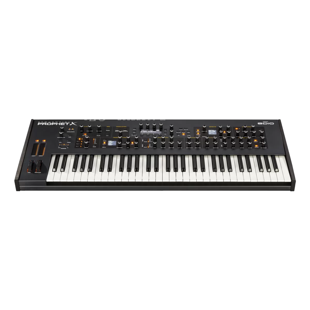 Цифро-аналоговый синтезатор Sequential Prophet X стал квинтэссенцией сочетания цифрового сэмплинга и аналоговой обработки звукового сигнала. Синтезатор имеет 8-голосную стерео (16-голосную моно) полифонию и обновлённый звуковой движок с двойной цифровой обработкой. Модель оснащена 2 осцилляторами высокого разрешения с выбором формы волны, четырьмя НЧ осцилляторами и четырьмя генераторами огибающей. Также доступна внутренняя библиотека сэмплов на 150 Гб от 8Dio, имеющая возможность расширения на 50 Гб за счёт загрузки индивидуальных сэмплов пользователей.