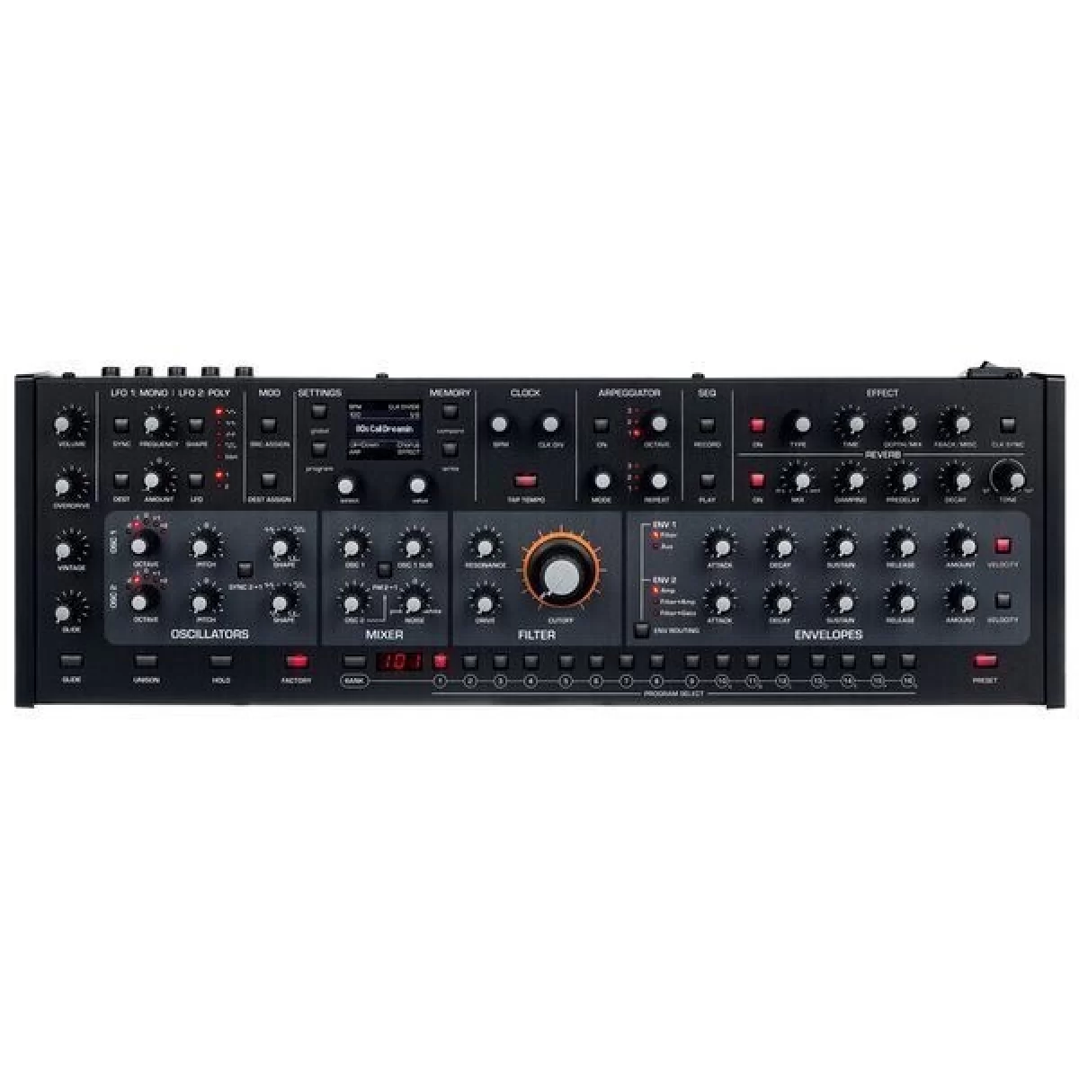 Описание подготовлено командой сайта samid.ruОн разработан для студий с ограниченным пространством и портативных сетапов, сохраняя при этом все ключевые функции своего полноразмерного аналога. Оснащён арпеджиатором, полифоническим пошаговым секвенсором до 64 шагов и набором стереоэффектов.
