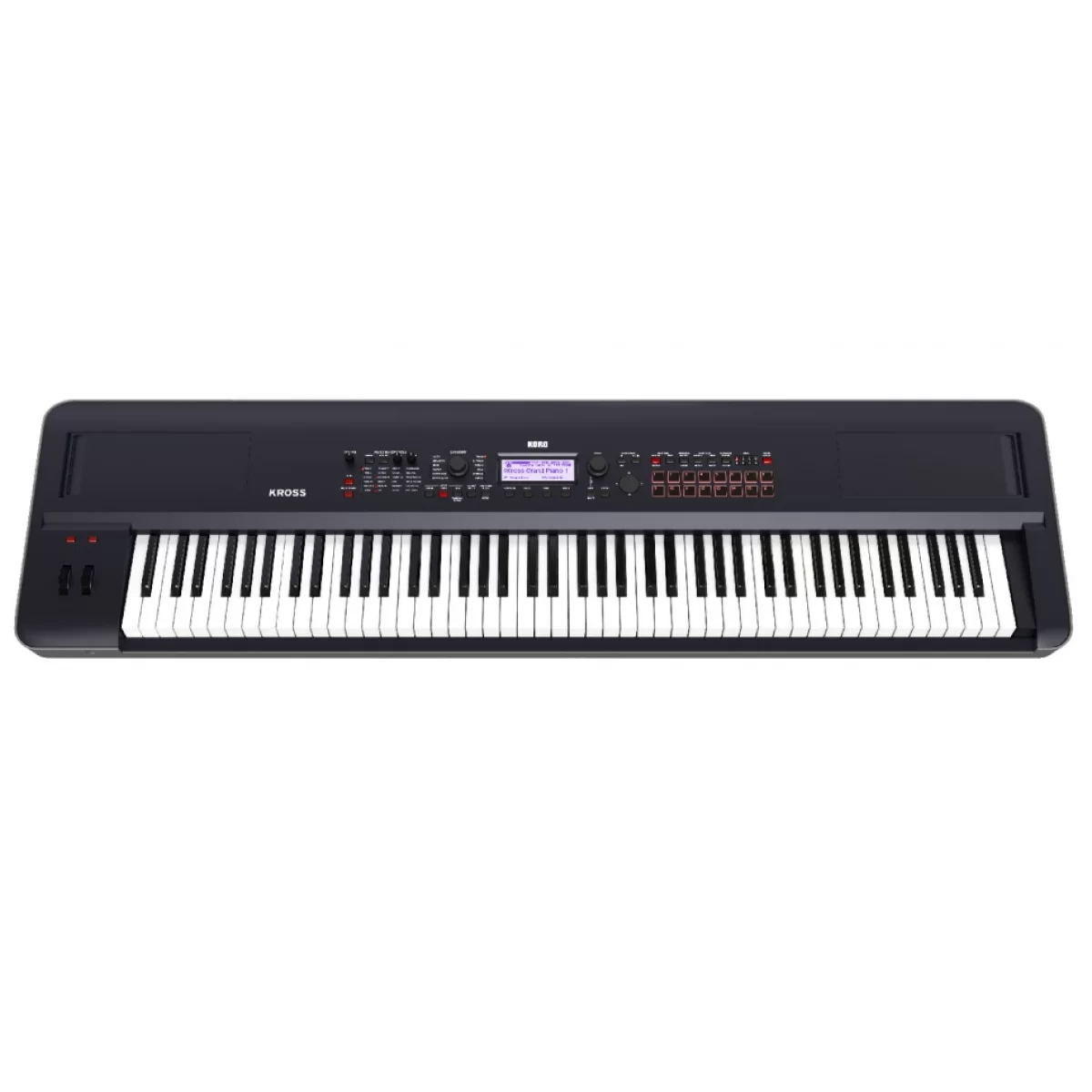 Korg KROSS2-88 – Профессиональная рабочая станция с 88-клавишной клавиатурой с молоточковой механикой, чувствительна к скорости нажатия.