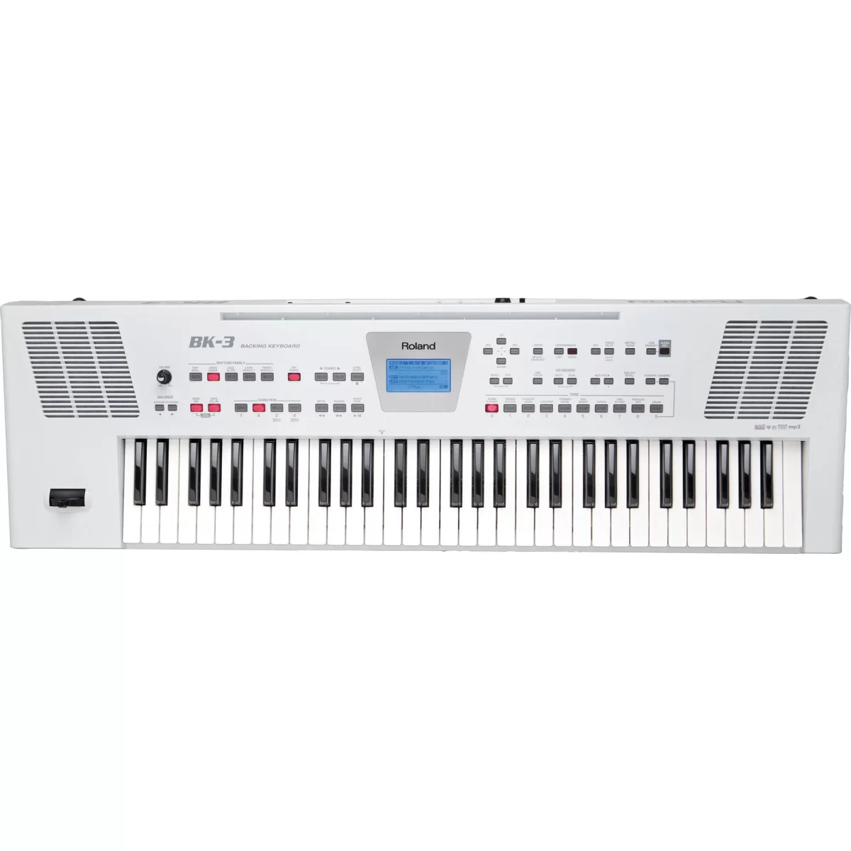 Наборы стилей и инструментов, содержащиеся в синтезаторе Roland BK-3-WH, охватывают огромное количество музыкальных жанров, собранных по всему миру: восточноевропейские, латиноамериканские, азиатские и кавказские стили. Более 850 различных звуков и пятидесяти различных наборов ударных, универсальных в исполнении аккомпанемента или сольных партий. Клавишный инструмент Roland BK-3-BK совместим с XG Lite, GS и GM2 форматами. Помимо этого, данная модель способна качественно воспроизводить стандартные файлы MIDI.