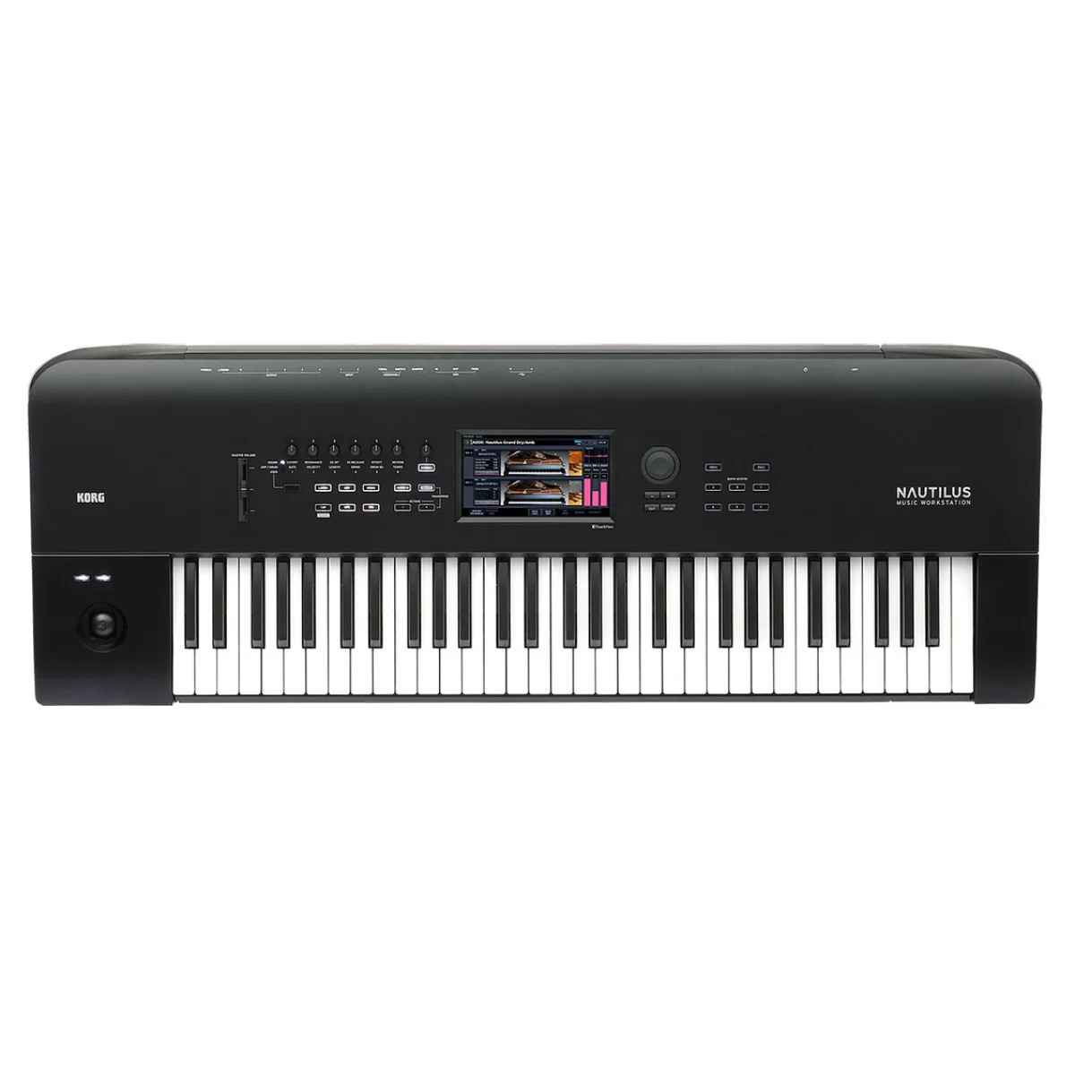 Korg Nautilus 61 - Рабочая станция, 61 клавиша, 1920 пресетов, 256 комбинированных пресетов, 42098 семплов, 4123 мультисемплов, 7" Color TFT (WVGA, 800 x 480), память около 25 ГБ, арпеджиатор, секвенсер, цвет - черный.