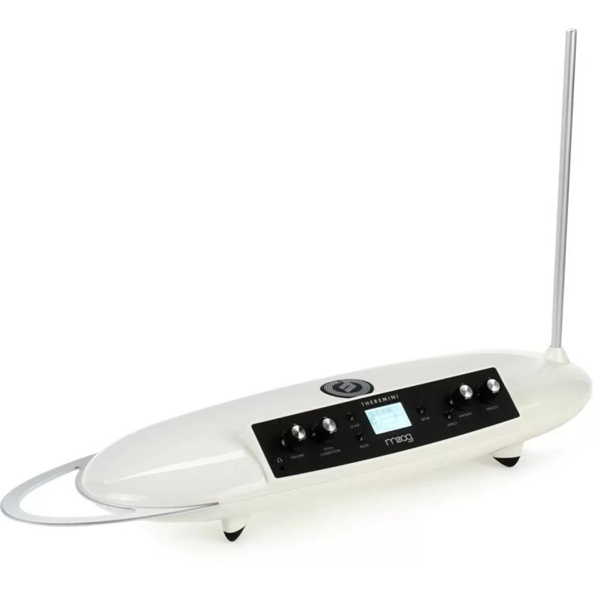 При приближении руки к левой антенне меняется амплитуда, а к правой — высота звука. Высота тона может отключаться. Устройство оснащено тюнером и дисплеем с графическим отражением нотной октавы. Имеется также встроенный динамик, два аудио выхода, выход для наушников. Moog Theremini не просто современное музыкальное устройство. Это весьма элегантный и броский прибор, настоящее украшение любой площадки.