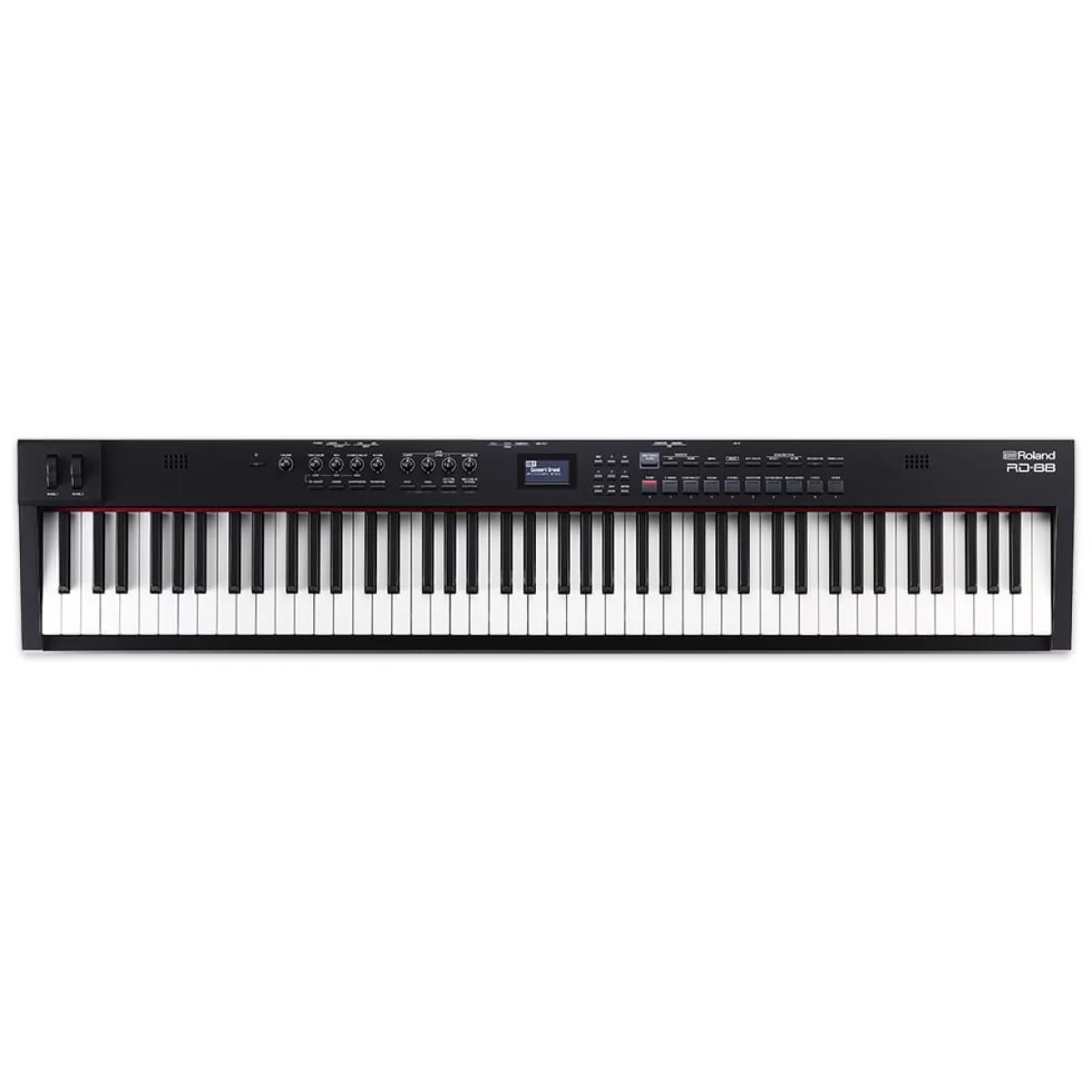 Roland RD-88 – Это профессиональное цифровое пианино, ориентированное на студийную и концертную деятельность. Инструмент предлагает мощный звуковой генератор, большое разнообразие возможных звуков, а также премиум-клавиатуру PHA-4 с 88 полноразмерными взвешенными клавишами, оборудованные чувствительностью к силе нажатия и молоточковой механикой. Также присутствует отделка клавиш под черное дерево, что способствует аутентичным и натуральным ощущениям при исполнении.