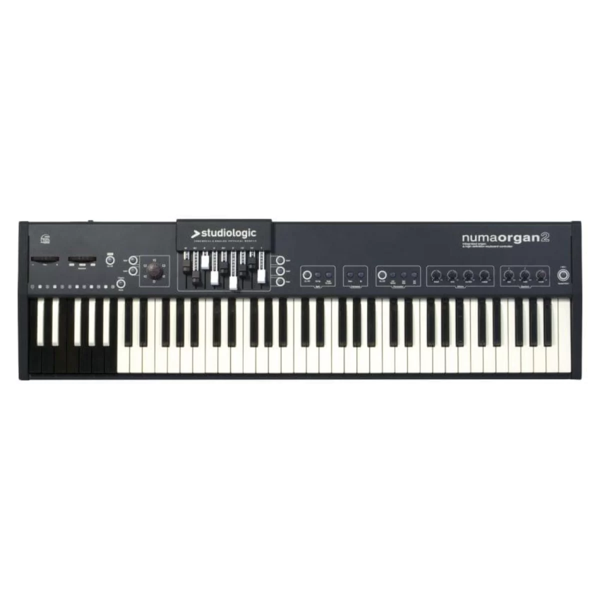 Studiologic Numa Organ 2 — Портативный орган, 73 полувзвешенные клавиши, полифония 128 голово, 7 видов органов, перкуссия, эквалайзер, эффекты, MIDI I/O, линейные входы/выходы, USB, 2 выхода для педалей, 2 выхода на наушники.