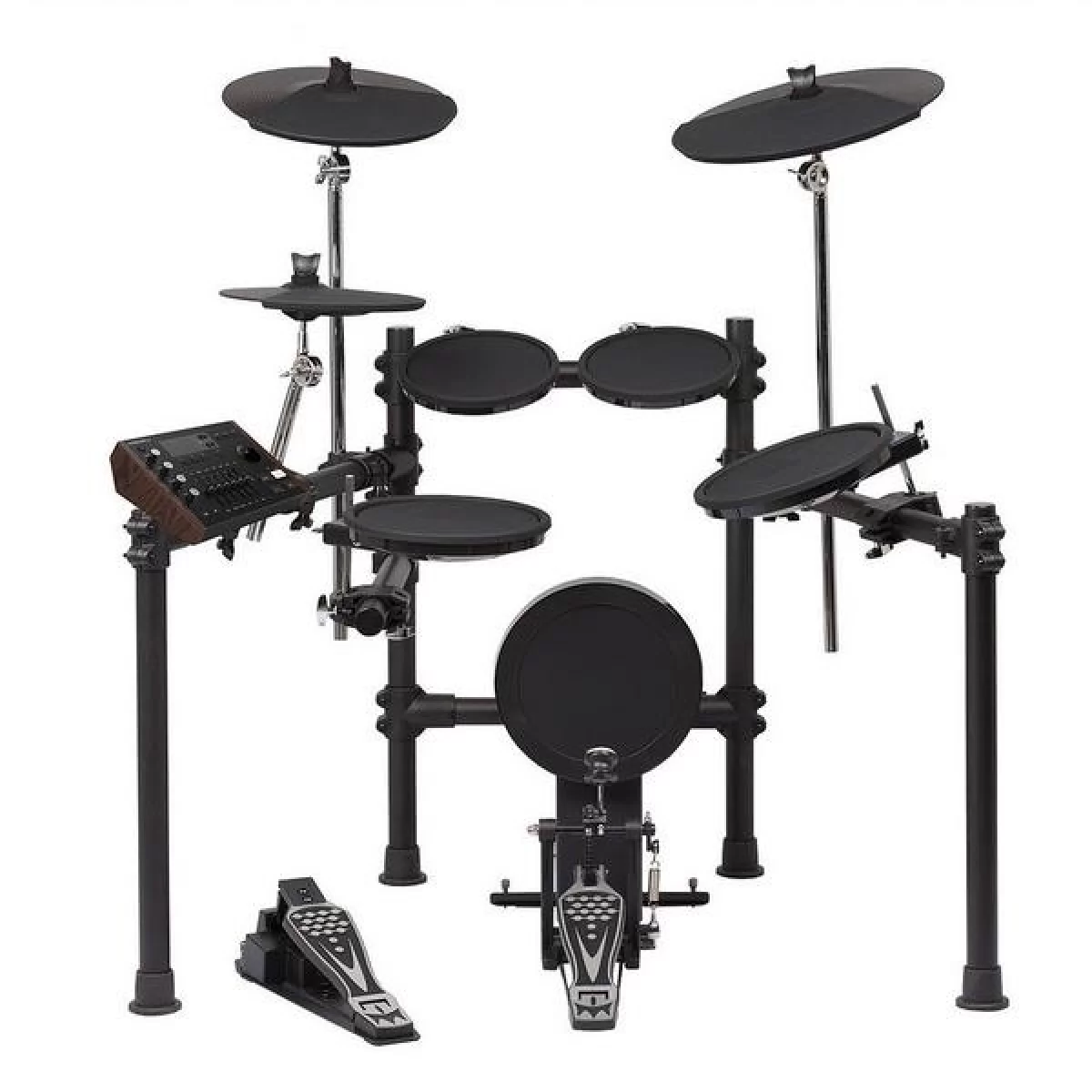 - Комплект из триггерного модуля, бас-бочки с педалью, малого барабана, 3 томов, тарелок крэш и райд, а также хай-хэта с педалью