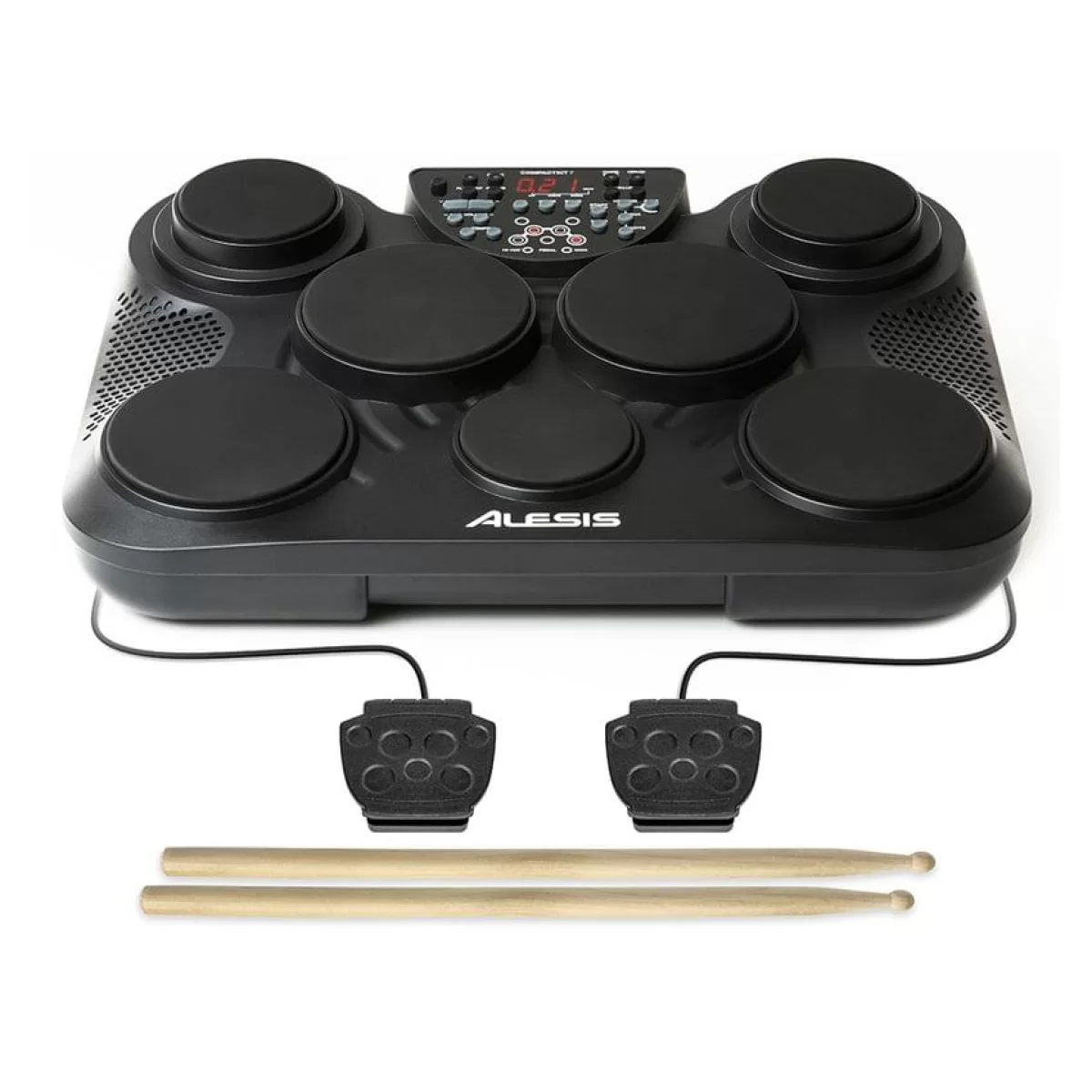 - В комплекте: адаптер питания 12V DC 2A, 2 барабанные палочки, 2 педали
