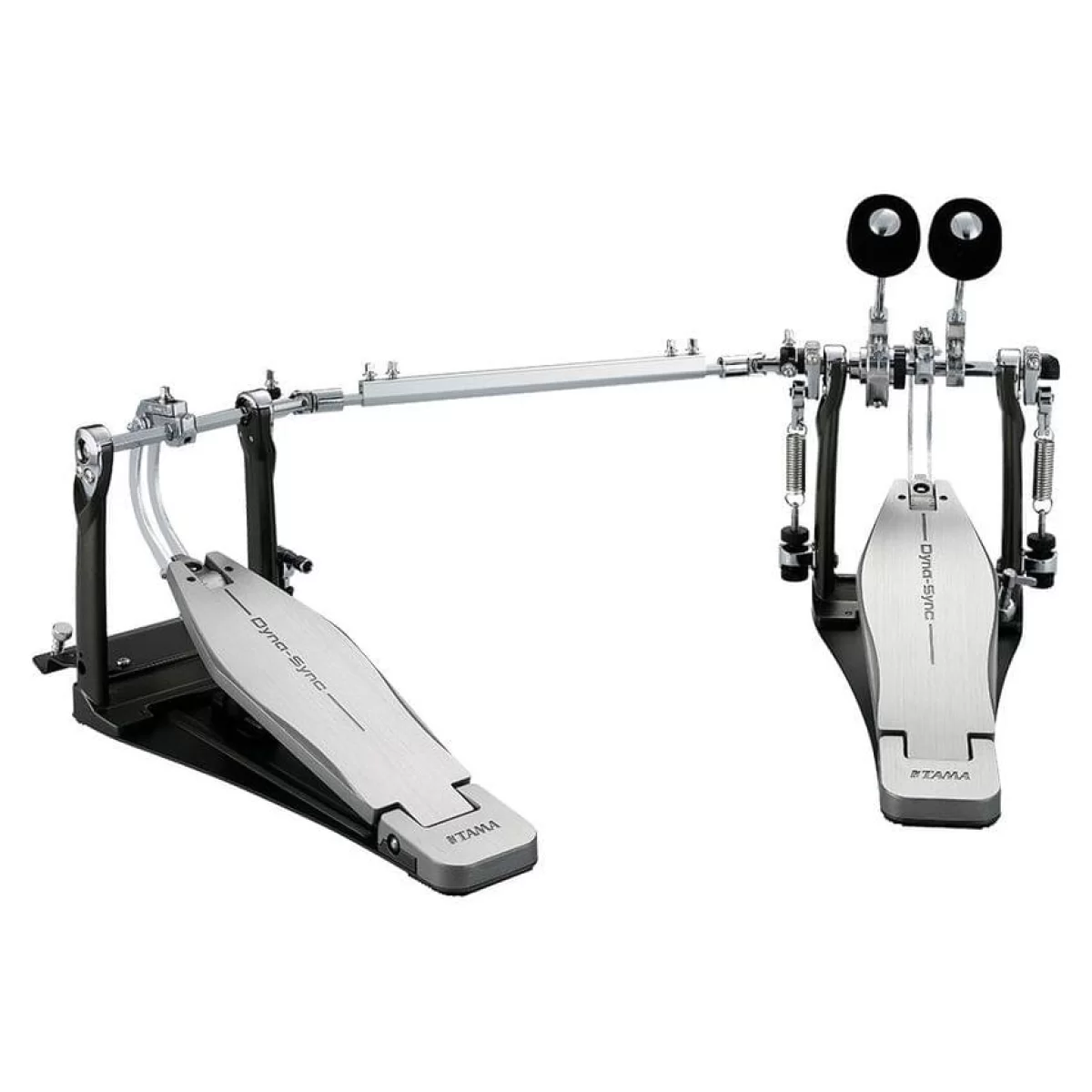 TAMA HPDS1TW Dyna-Sync Series – двойная педаль из линейки Dyna-Sync. Эта модель оснащена усовершенствованным передаточным механизмом, за счет которого отличается точностью позиционирования и центрирования, позволяя получить оптимальный баланс силы удара, скорости и отдачи, а также добиться феноменальной скорости реакции. Радиус вращения удобно регулируется. Увеличенный радиус дает более высокую чувствительность для передачи мельчайших нюансов игры, уменьшенный позволяет добиться лучшей динамики. Это делает педаль универсальной, она отлично проявит себя при различной технике игры. В конструкции используется более толстая пружина возврата Sync-Coil – в полтора раза толще, чем знаменитая Cobra Coil. Она помогает футборду возвращаться в исходную позицию наиболее быстро. Угол наклона футборда – полностью настраиваемый. Колотушки Dyna традиционной конструкции, слегка сужающиеся к краю, соприкасаются с поверхностью пластика бас-барабана максимально равномерно, обеспечивая чистый звук и отличную артикуляцию. Запатентованная система фиксации и натяжки пружины Swivel Spring Tight обеспечивает гладкий, плавный ход педали.