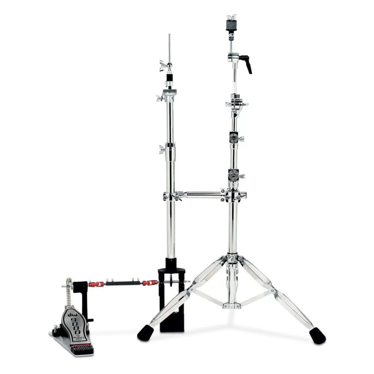 В стандартной комплектации этой стойки включены все проверенные временем профессиональные решения, задействованные в серии DW 9000 - это мощные стальные трубы, встроенный фиксатор высоты, система регулировки наклона тарелок и другие. Модель 9550 поставляется с выносной педалью, креплениями MG1 и MG2, а также с регулируемой карданной передачей.