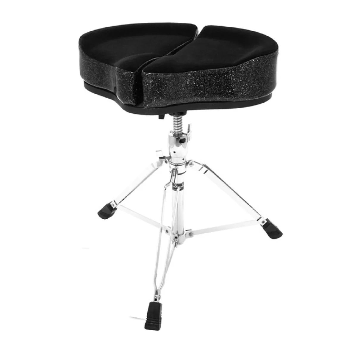 AheadAhead SPG-BS - Стул для барабанщика, усиленное сидение мотоциклетного стиля, 18" сидение Spinal G из черной ткани сверху/черные бока с блесками, основание на 4 ножках, регулировка высоты 457 -610 мм
