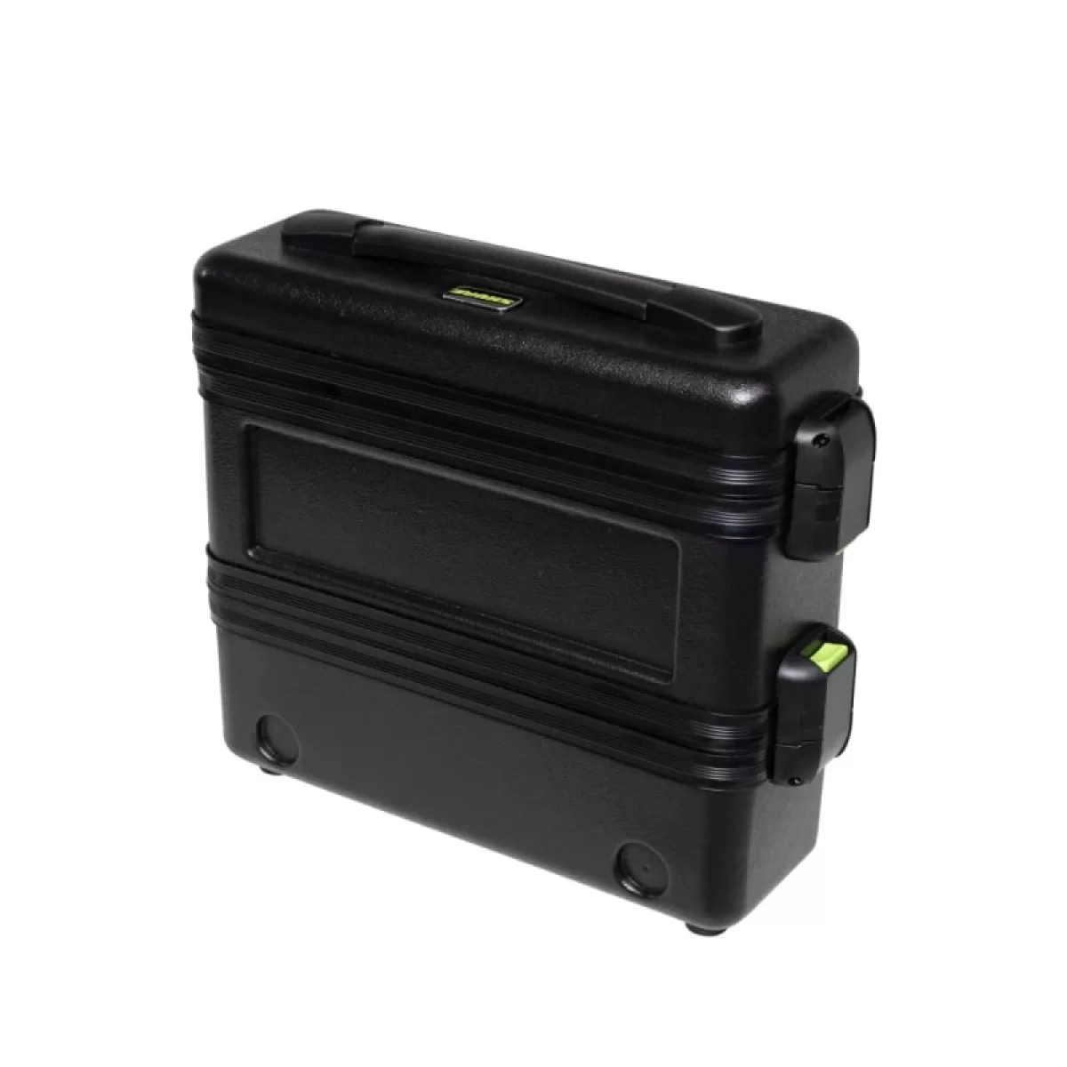 Прочная конструкция выполнена из пластика. Есть возможность штабелировать кейсы. Внутри предусмотрено пространство для передатчика, микрофона или петлички. Снятые передняя и задняя крышки позволяют сделать доступ к элементам управления и антеннам.