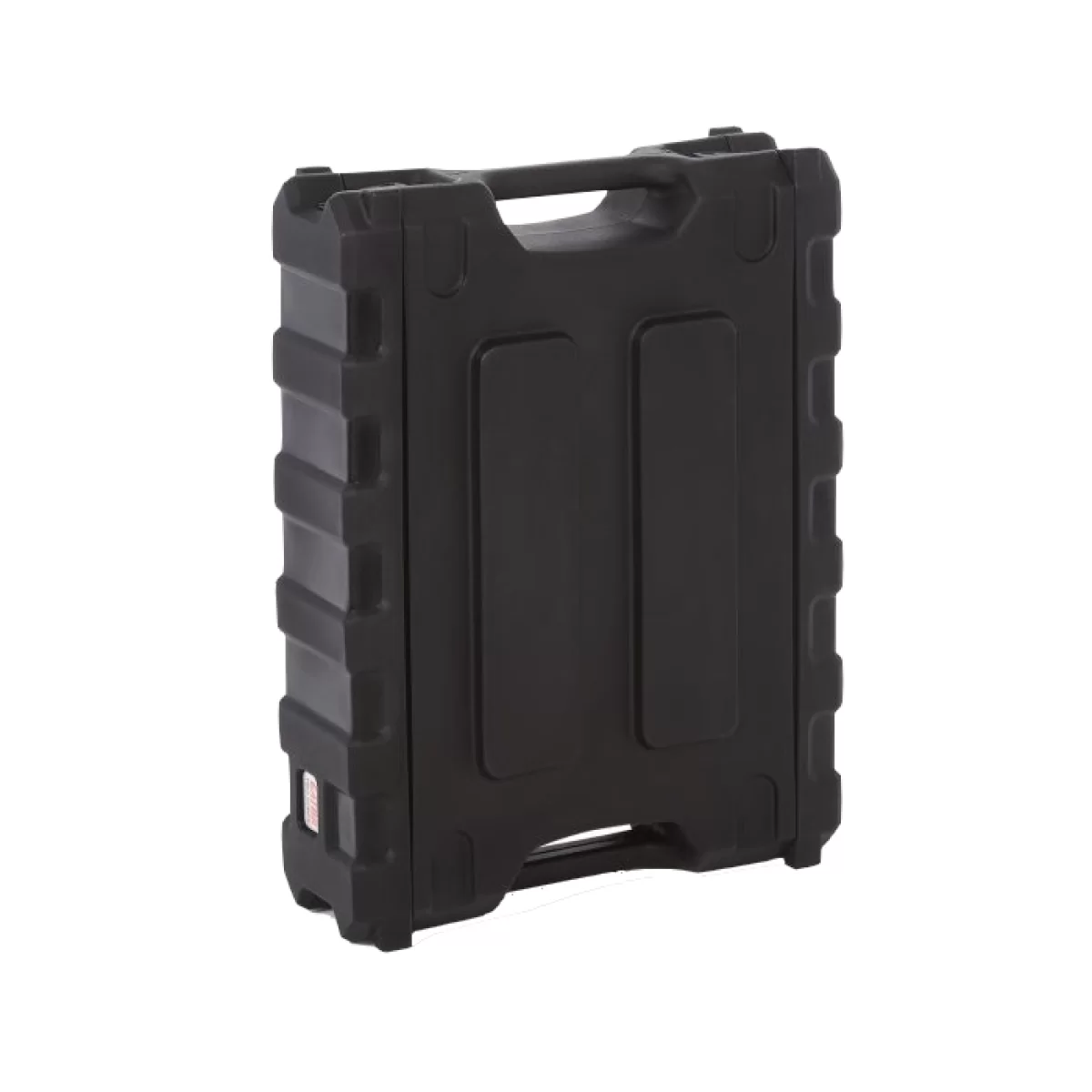 Практически неразрушаемая конструкция из формованного полиэтилена с возможностью складывания в стойку. Полноразмерные передние и задние крышки. Эргономичные боковые ручки для переноски. Встраиваемые стальные поворотные защелки. Передние и задние резьбовые рэковые пластины.