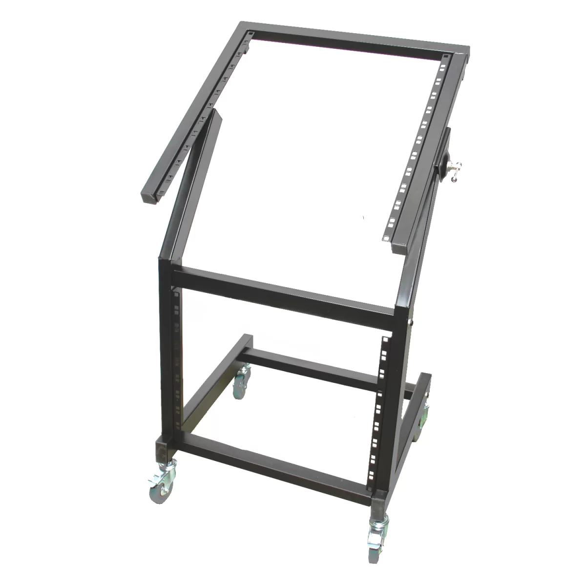 Стойка имеет 2 отделения - на наклонной верхней раме можно расположить 12 юнитов стандартного размера 19", и 8 юнитов можно расположить на вертикальной стойке. Прочная надежная стойка выполнена из стали и предназначена для размещения рэкового оборудования в студии. Отлично подходит для профессионального, сценического и домашнего использования. Стойка снабжена колесами с тормозом для комфортного перемещения.
