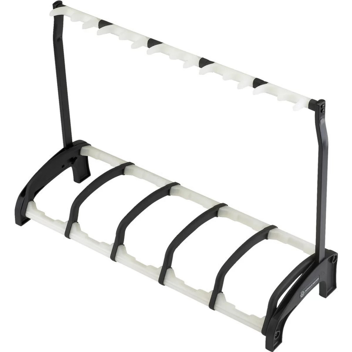 K&M 17515-016-00 - Это универсальная складная напольная стойка для пяти гитар с чёрными саппортами и держателями медиаторов.