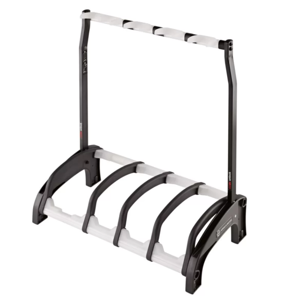 Стойка оснащена прозрачными саппортами. Компоненты стойки изготовлены из специального сплава стали и материалов повышенной прочности, гарантирующих продолжительную эксплуатацию.