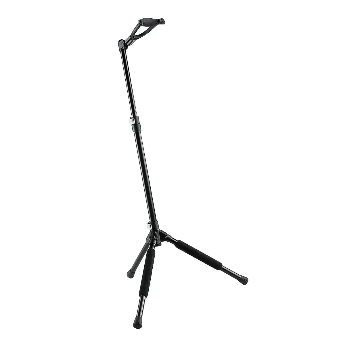 Konig&Meyer 17680-000-55 - Разборная стойка для всех видов гитар, банджо и басовых с регулировкой по высоте, устойчивыми ножками, специальными мягкими прокладками для защиты корпуса гитары и прочным хомутом с защелкой для дополнительной безопасности.