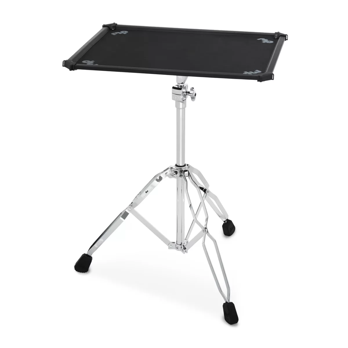 Take your tech with you to any gig and the DW Laptop Table will ensure it has dedicated space in your kit setup. This lightweight, durable, and angle-adjustable aluminum table has a minimum height of 25.5', a maximum height of 44', and offers a 16-3/4″x22' tabletop for your accessories with a non-skid surface. The table features an integrated cable management system for keeping your cables tidy and untangled. As part of DW's 3000 series hardware line, the Laptop Table stand includes a striking chrome finish and a memory lock to expedite setup. Whether you're running a fully electronic, hybrid or acoustic setup, this DW Laptop Table helps you keep your laptop within reach. *