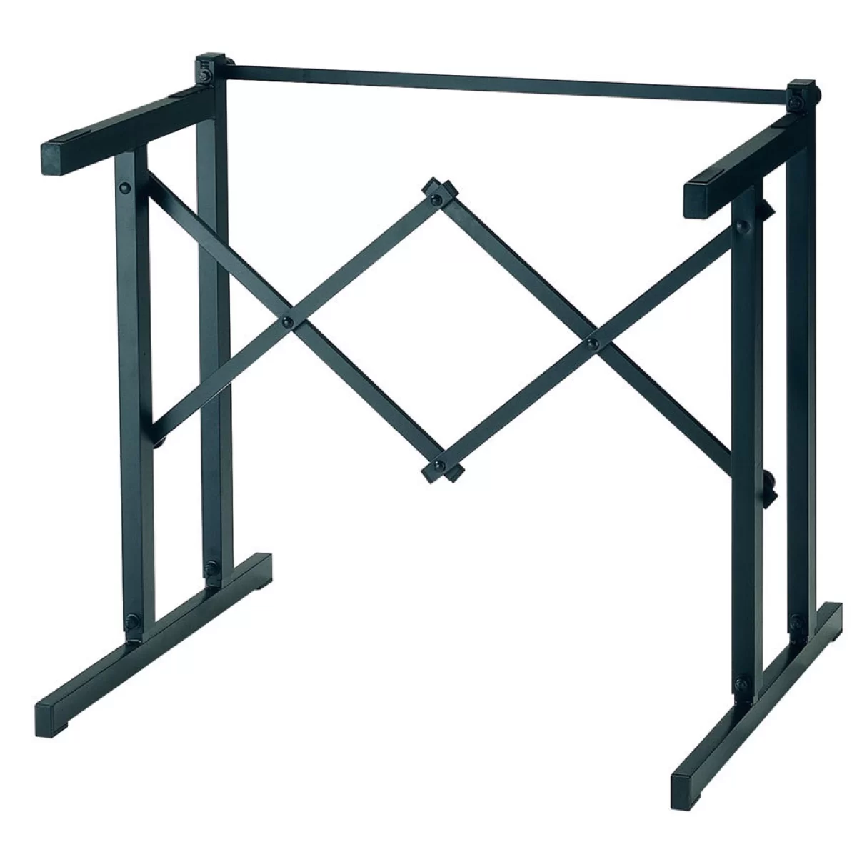 Профессиональная стойка для клавишных. Стойка регулируется по высоте от 630 мм до 960 мм. Может использоваться с приставками для установки дополнительных клавишных либо других дополнительных устройств: поворотной стрелы или держателя для нот.