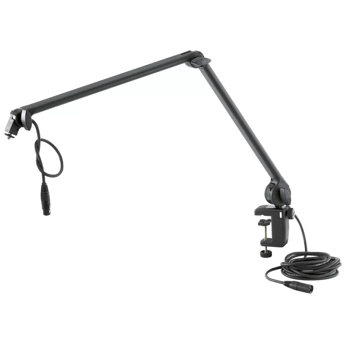 K&M микрофоный настольный кронштейн с 3/8 "или 5/8" разъемами резьбы для звуковых студий и мультимедийных рабочих станций с новым инновационным зажимом для стола. Легкий для установки, подходит для микрофонов с максимальным весом 1,5 кг. 6 м кабель с разъемом XLR 3-пин выводом входит в комплект поставки. Диапазон зажима от 0 до 48 мм, зажим подходит для широкого спектра монтажа.