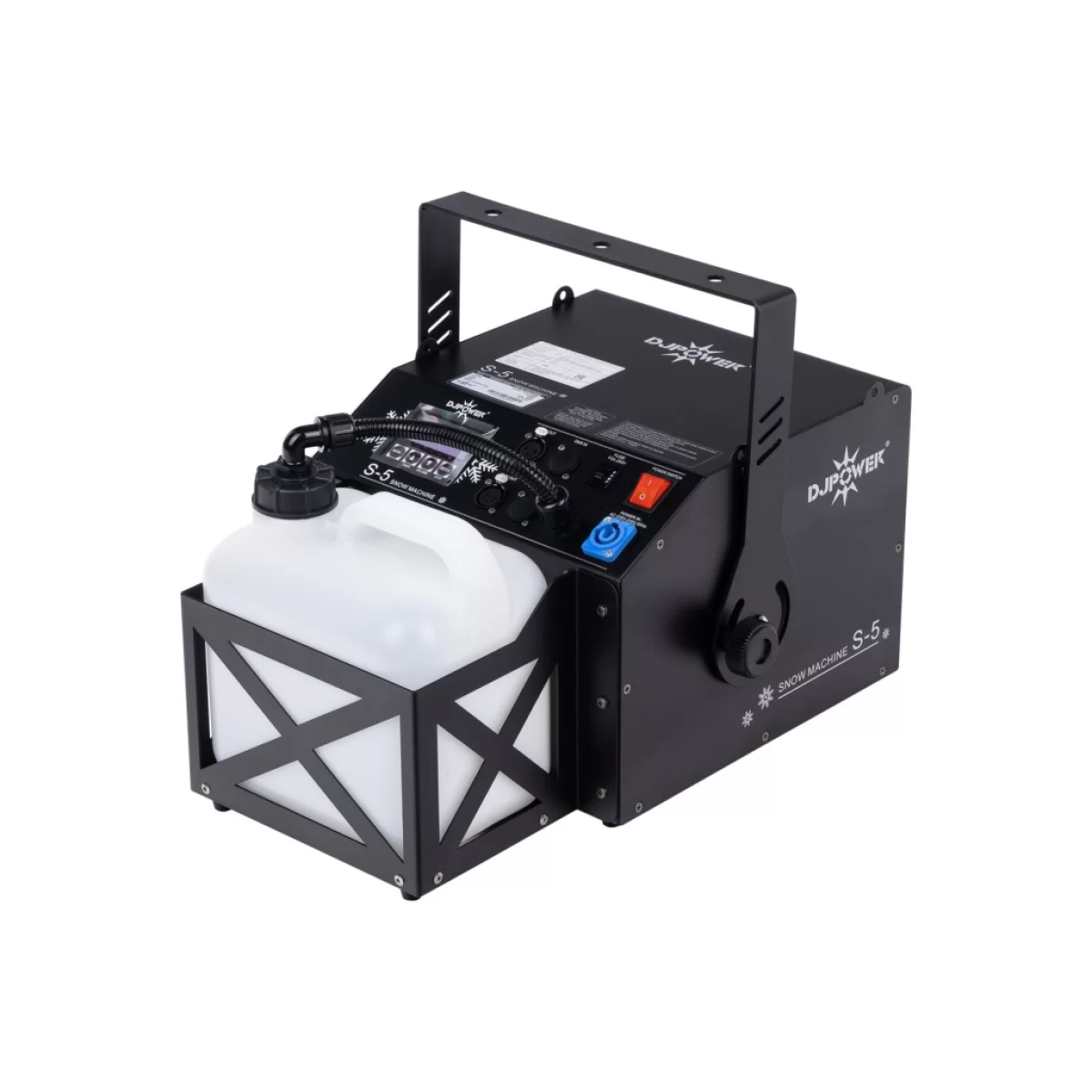 S-5 – профессиональный генератор искусственного снега. Он может создавать как тихий романтический снег, так и удивительные эффекты метели, при этом у него очень низкий уровень рабочего шума, что делает S-5 отличным прибором для ситуаций, где требуется тихая работа. Точная настройка объема выхода и скорости вентилятора позволяют достичь идеального визуального эффекта.