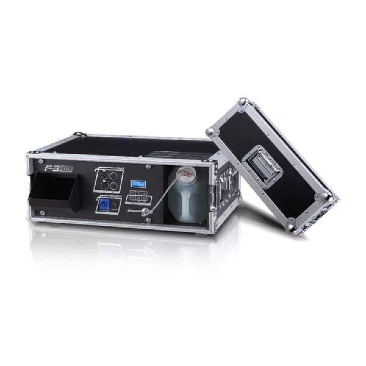 Управляется машина от встроенного контроллера с информационным ЖК дисплеем и таймером и по протоколу DMX.