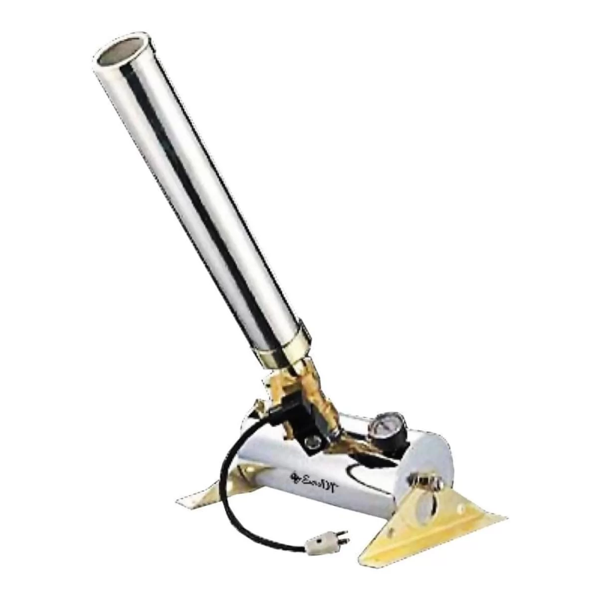 Новейший дизайн модели, выполненной из нержавеющей стали. Внутрь генератора при помощи компрессора или насоса закачивается воздух давлением до 1 мПа. Выстрел происходит при подаче напряжения 220 В. на генератор, в котором установлен электромагнитный клапан. Сила выброса конфетти чрезвычайно высока: до 15 м в высоту.