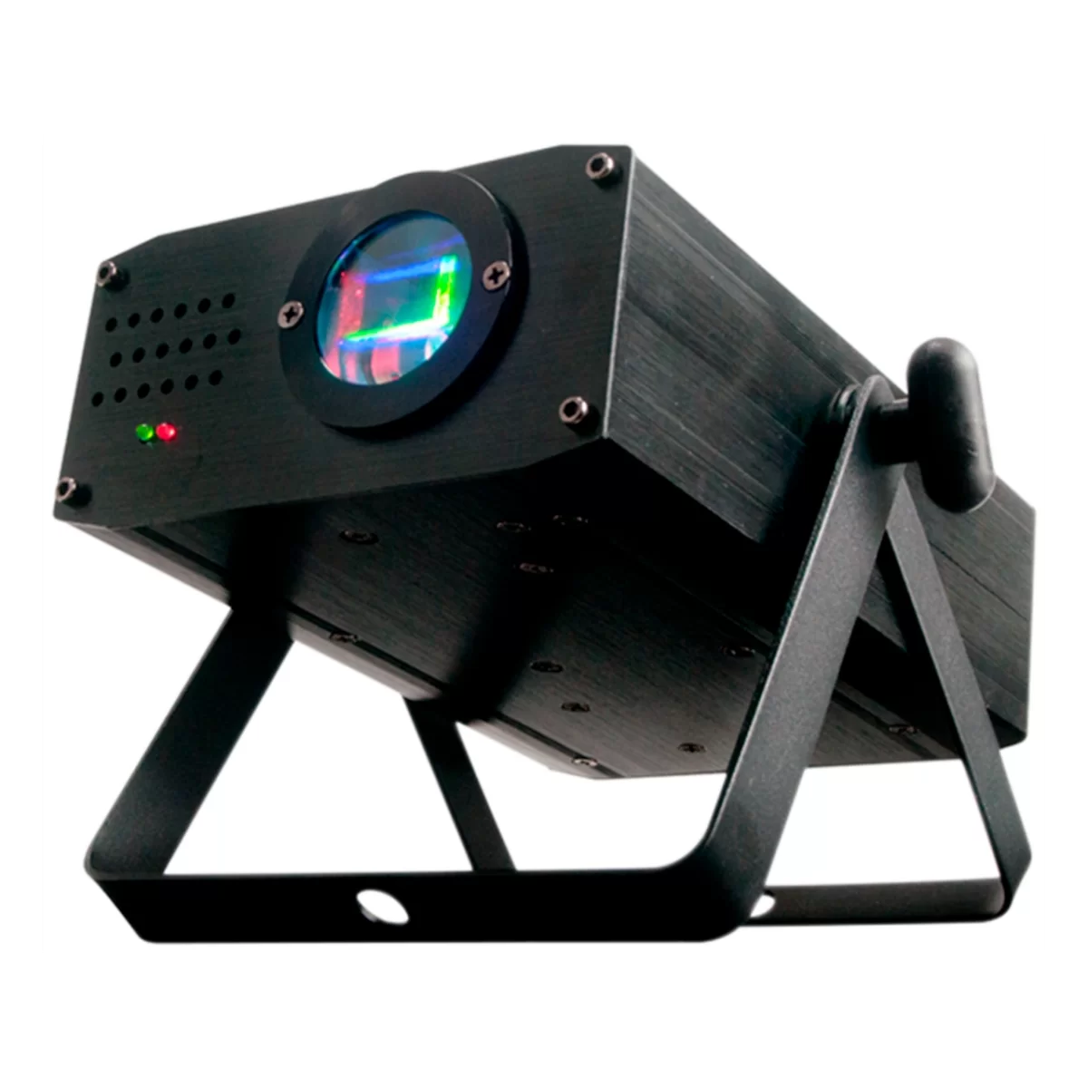 Прибор оснащен красным лазером мощностью 80 мВт, зеленым лазером мощностью 30 мВт и синим лазером мощностью 60 мВт. Лазер имеет 25 моделей геометрических узоров, которые можно проецировать на танцпол, потолок или стену, а также 15 динамических встроенных программ. Доступно 2 режима работы: автоматический режим (встроенные программы) и звуковая активация. На задней панели находится регулятор скорости и регулируемая ручка чувствительности микрофона. В комплект входит двойной кронштейн для подвешивания и пульт управления.