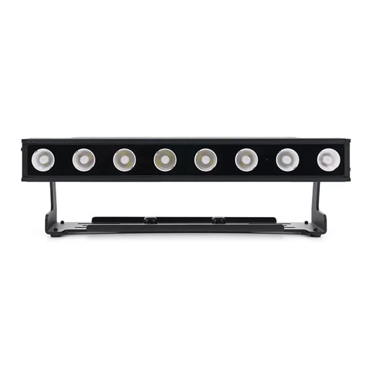 Описание подготовлено командой сайта samid.ruBARTONE S-8 XL — компактный светодиодный линейный прожектор типа LED BAR с профессиональными функциями управления. Он будет полезен в случаях, когда нет возможности физически разместить полноразмерный метровый прожектор. Несмотря на компактные размеры, это весьма «дальнобойное» устройство благодаря оптической системе и углам раскрытия луча 12° (22°) × 12° (22°), где 12° — угол луча, а 22° — угол поля. Задвоения угла раскрытия луча нет: прожектор спроектирован так, что кривая силы света практически симметрична, а световое пятно почти круглое. На дистанции до 10 метров прожектор остаётся эффективным, обеспечивая освещённость более 500 лк при использовании всех светодиодов. Управление светодиодами осуществляется группами: четыре группы по два светодиода.