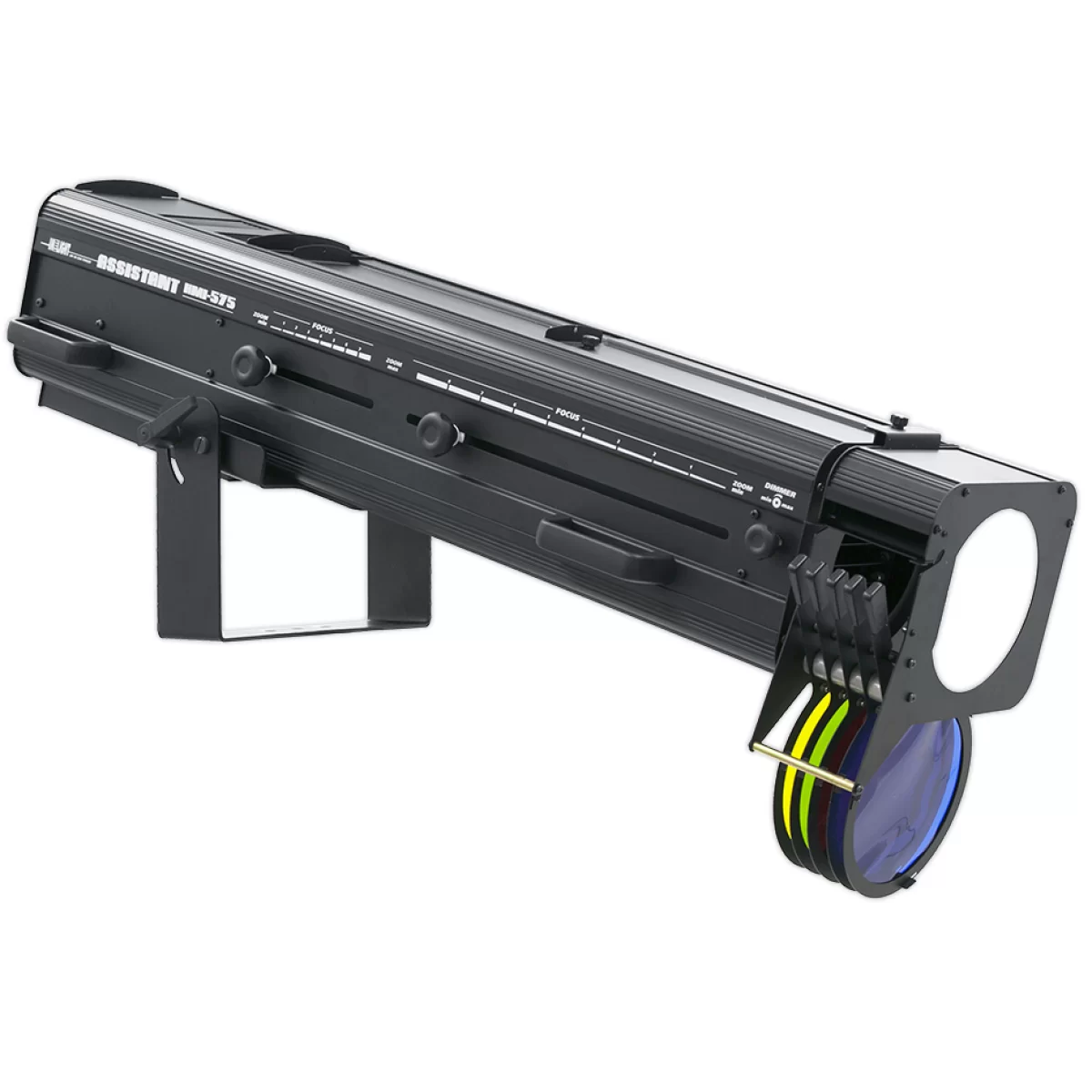 Один из немногих ламповые приборов на рынке. Все функции управления ручные и расположены на корпусе прибора. Оператор может регулировать яркость, настраивать размер пятна при помощи диафрагмы или оптически, устанавливать гобо, использовать кассету светофильтров c 6 слотами (кассета покупается отдельно). Типичная рабочая дистанция прожектора ASSISTANT HMI-575 может достигать от 20 до 30 метров поэтому прожектор подходит для относительно небольших театральных или концертных залов.