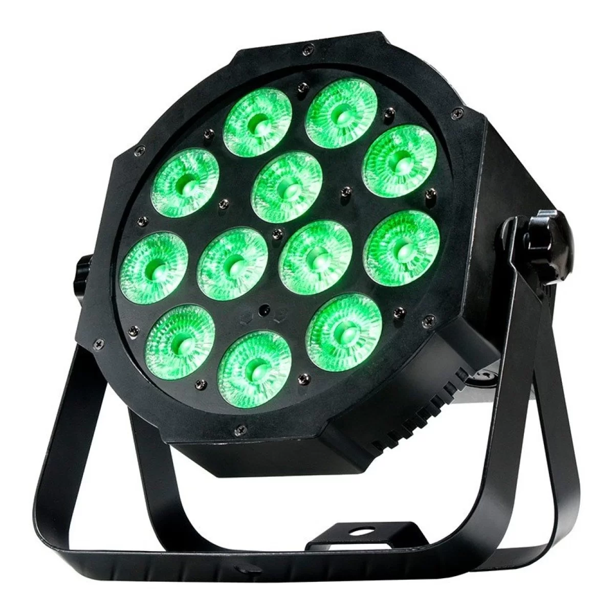 - Сверхяркий плоский параболический прожектор Par 64 с 12 светодиодами Quad (RGB-УФ 4-в-1) мощностью 4 Вт