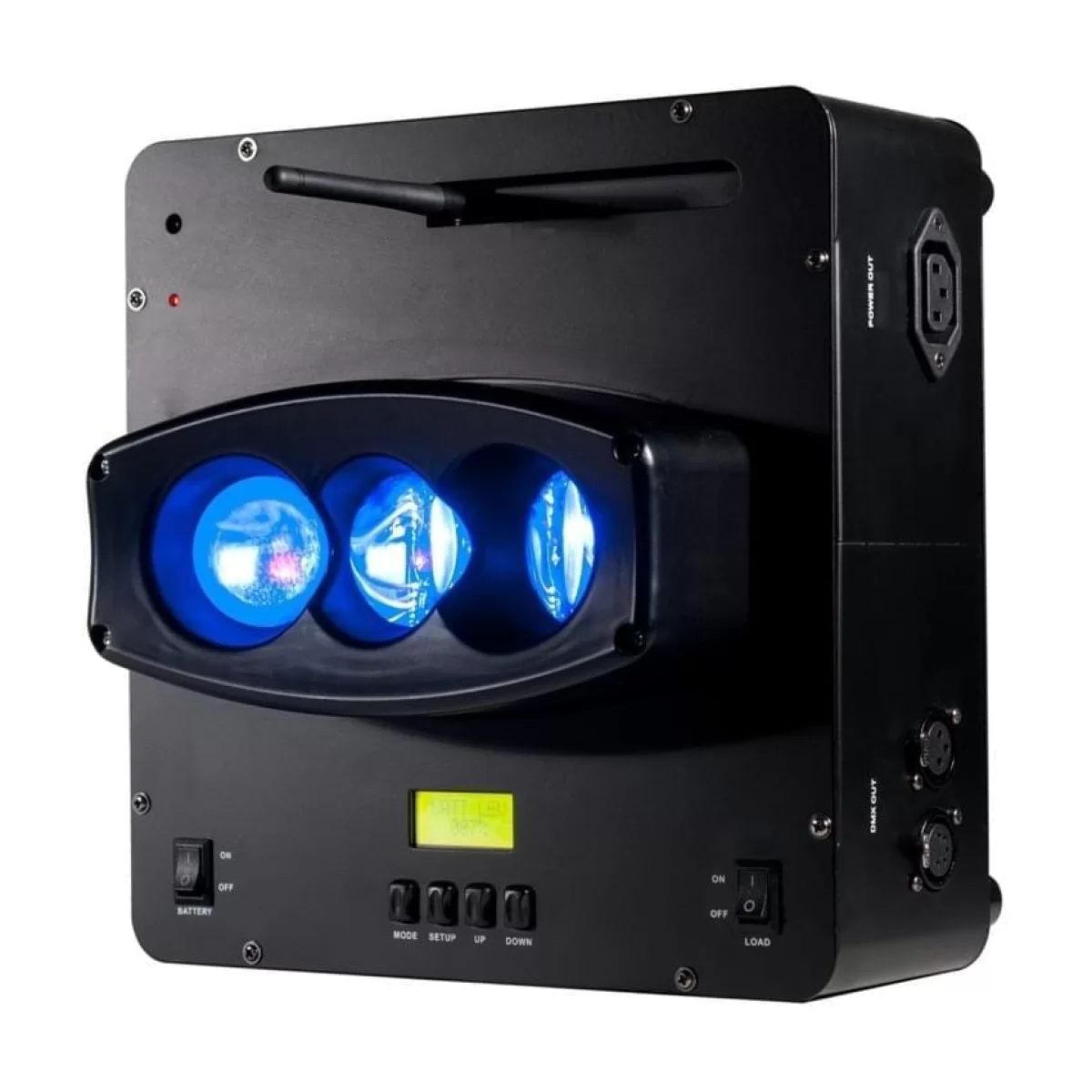 - Встроенной заряжаемая литиевая батарея и встроенный модуль беспроводного DMX, работающий на расстоянии до 750 м.